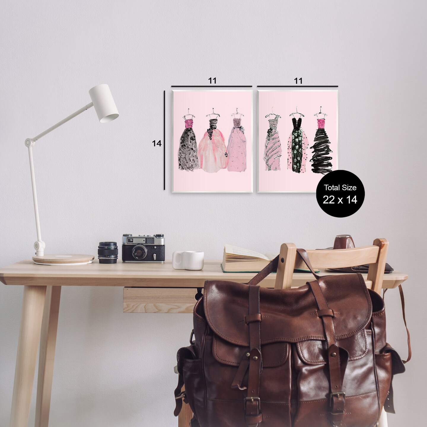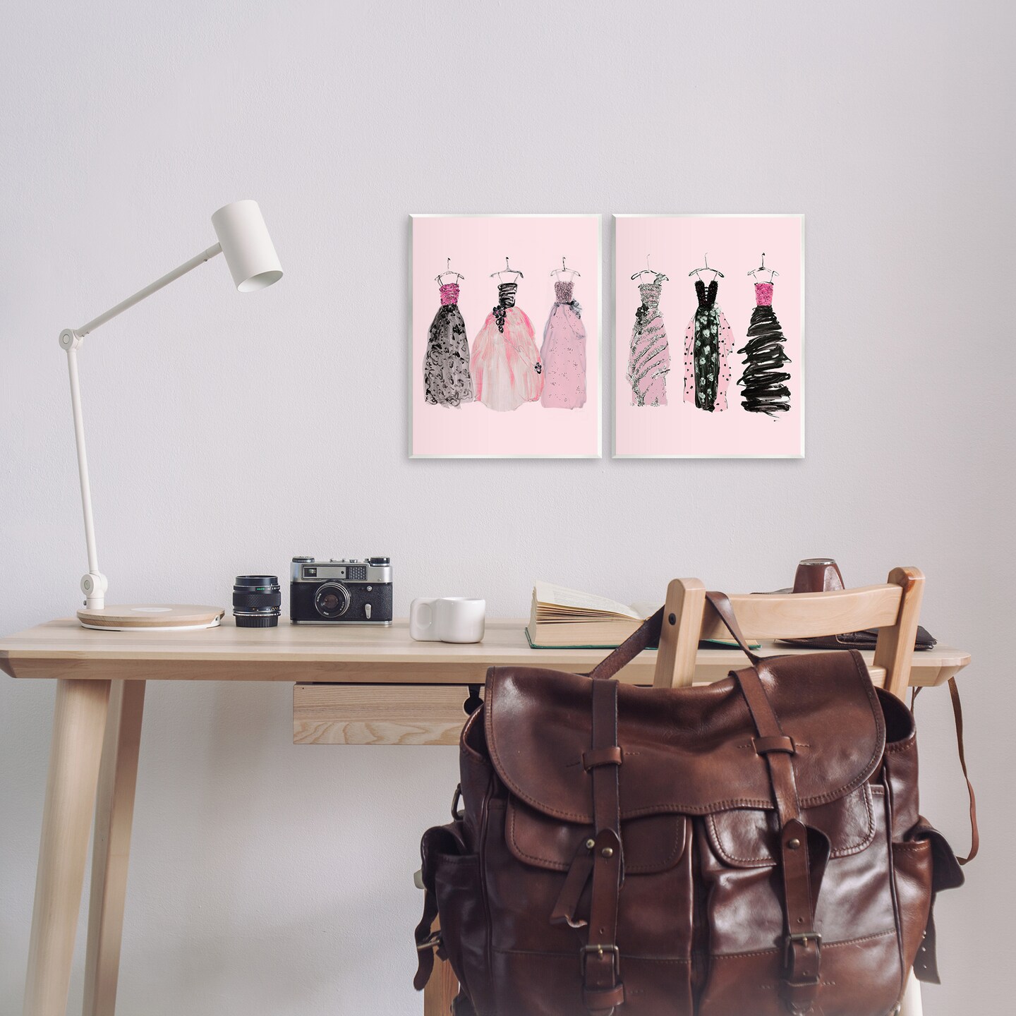 Stupell Industries Pink & Black Trendy Dresses 2pc Wall Plaque Set By Sally Swatland