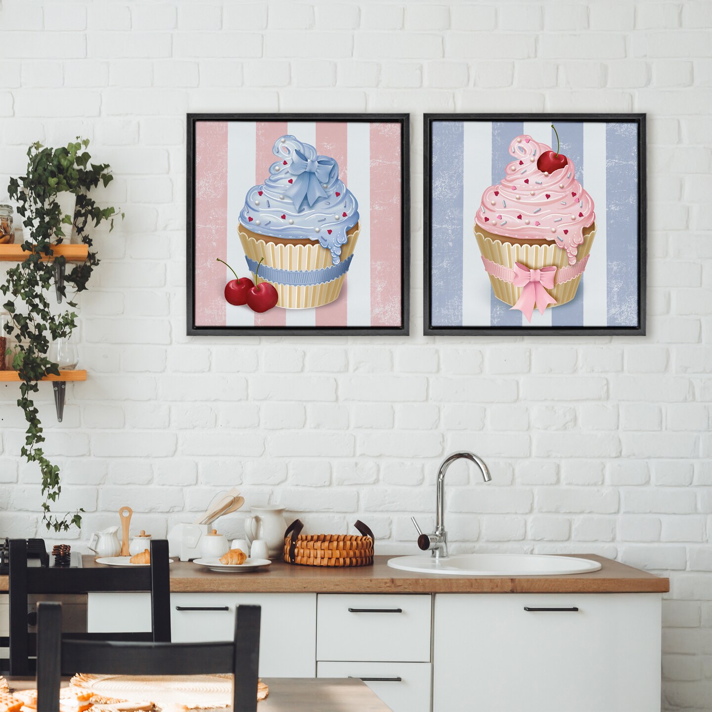 Stupell Industries Pink & Blue Cupcakes 2pc Floating Frame Set, design by Lori Mosley