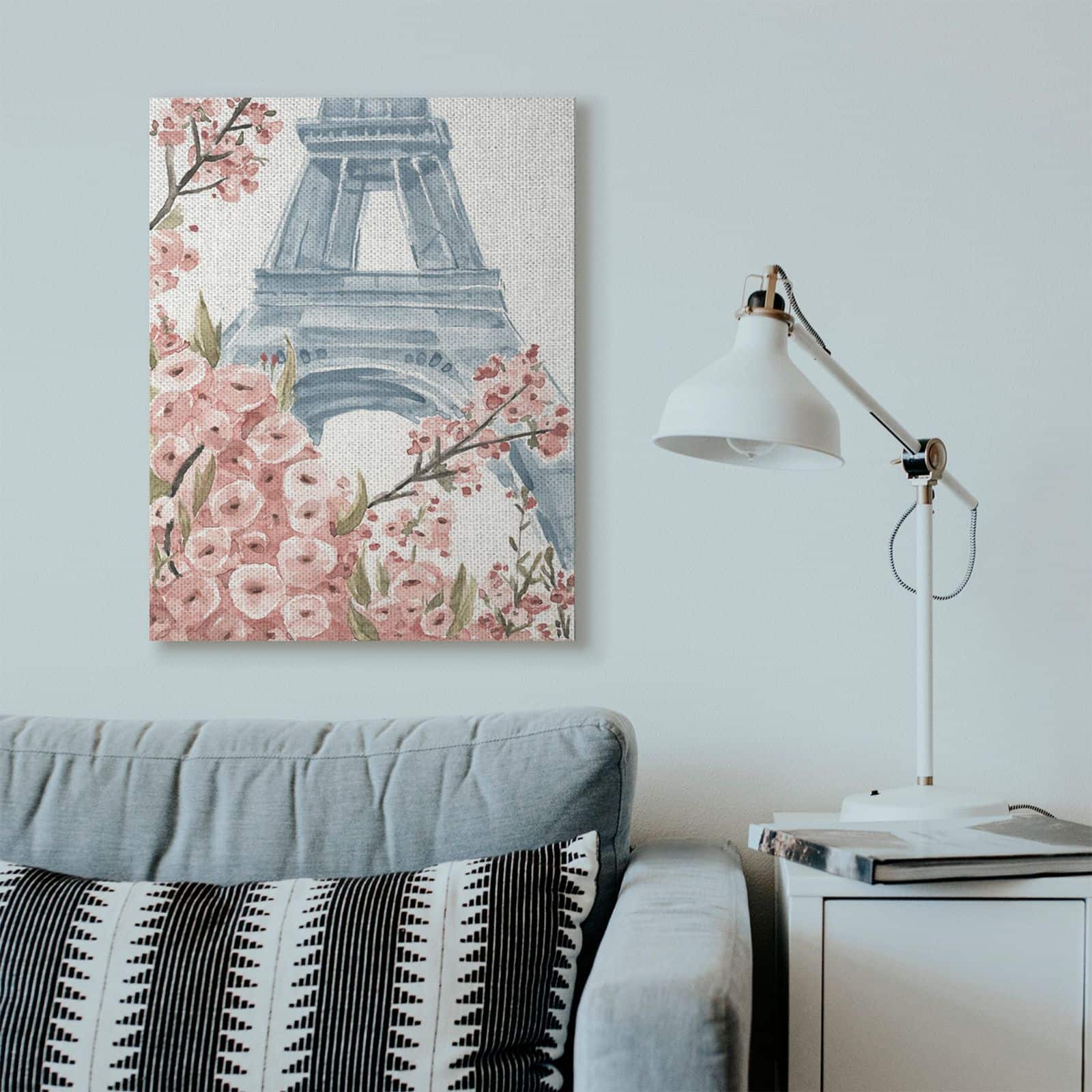 Stupell Industries Pink & Blue Paris Flowers Eiffel Tower Painting Wall Accent