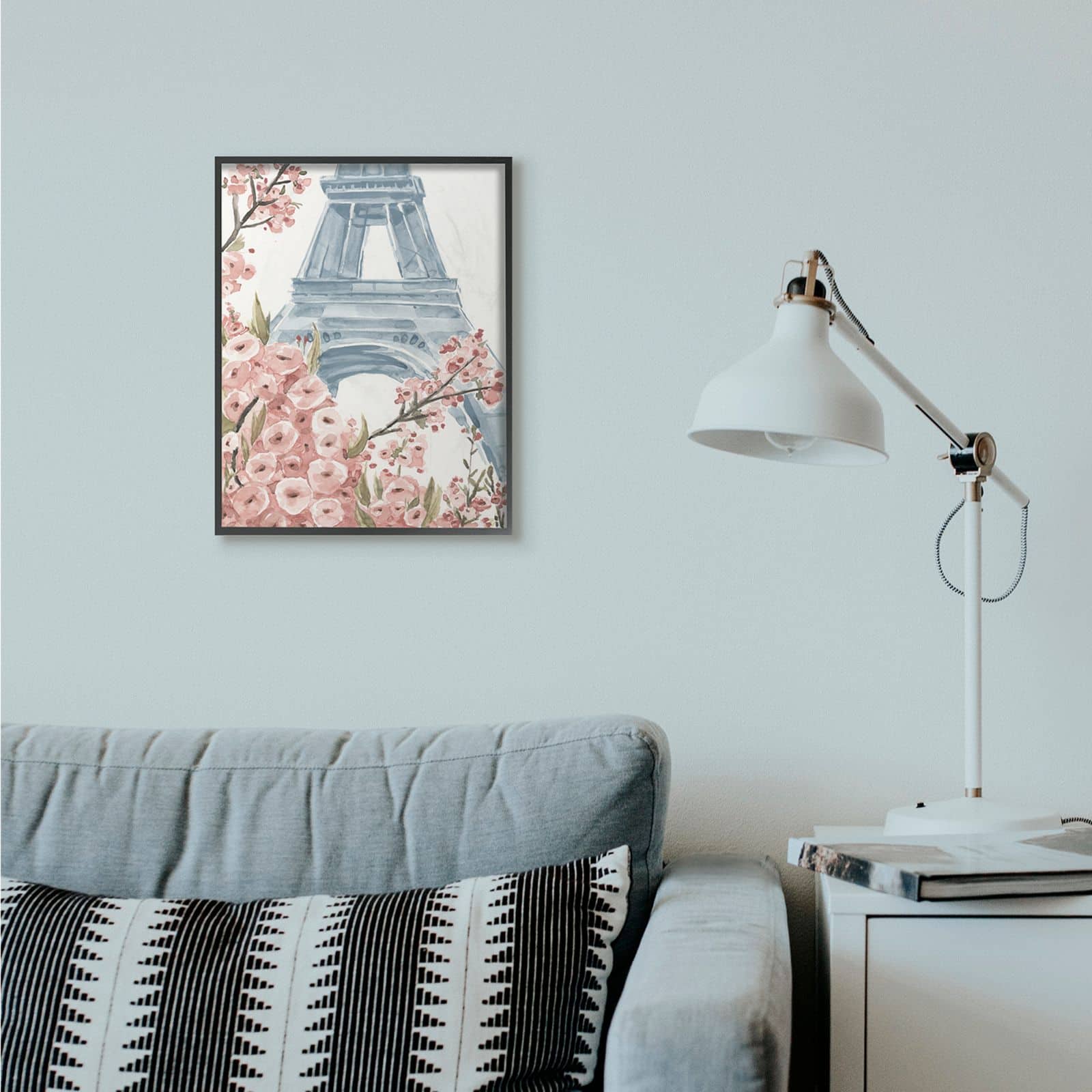 Stupell Industries Pink & Blue Paris Flowers Eiffel Tower Painting with Black Frame Wall Accent