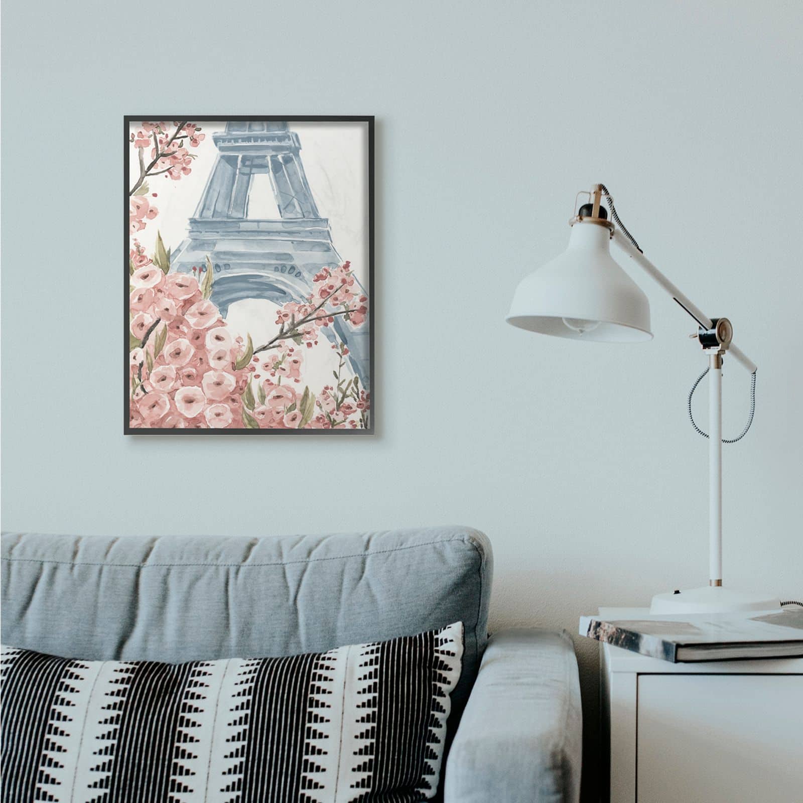 Stupell Industries Pink & Blue Paris Flowers Eiffel Tower Painting with Black Frame Wall Accent