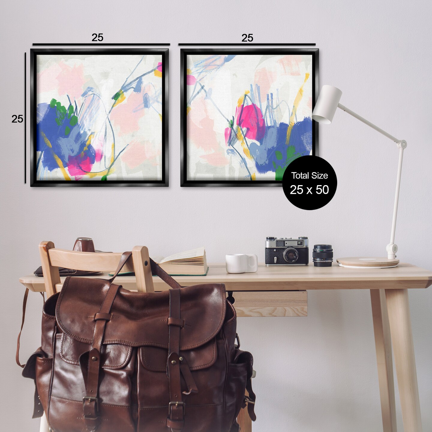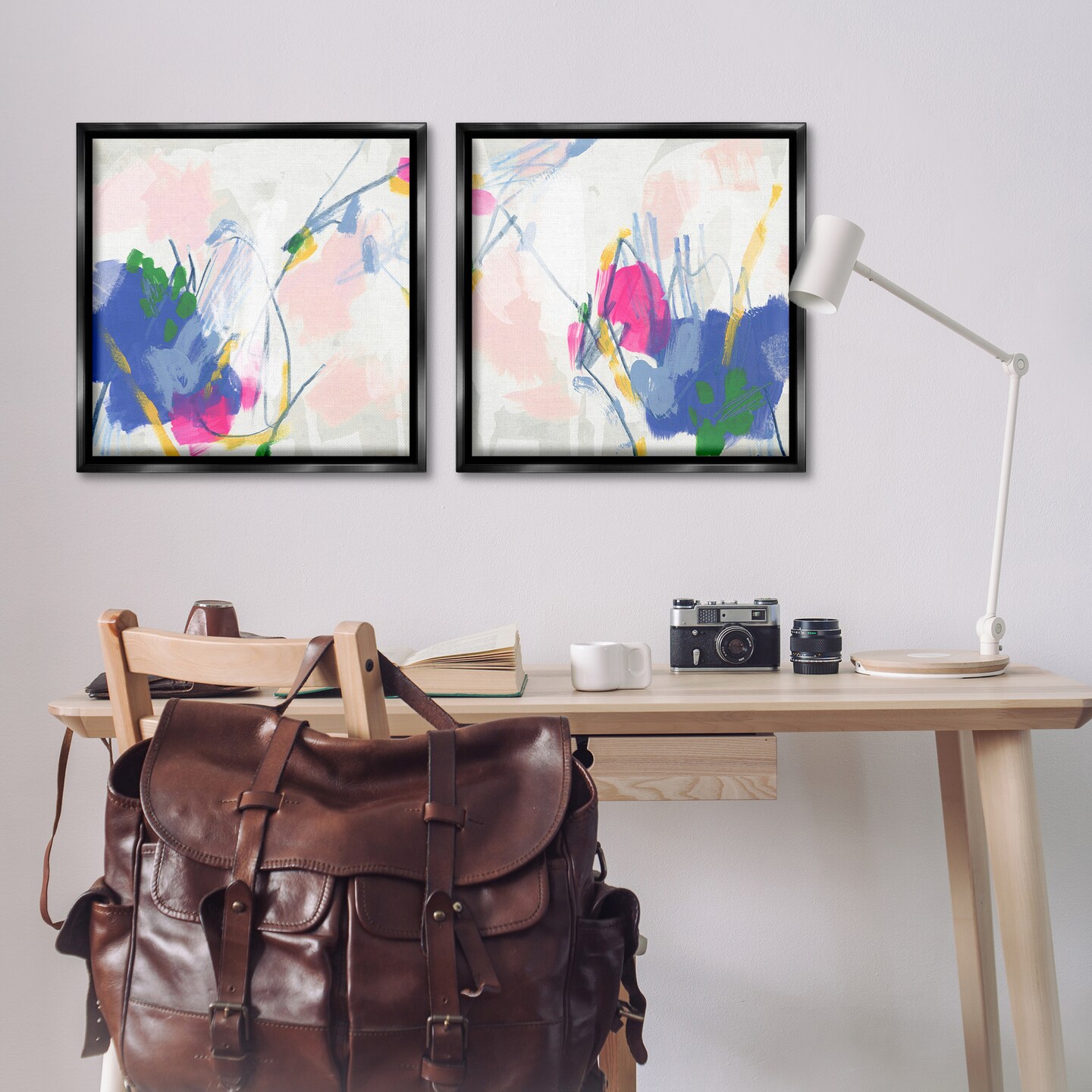 Stupell Industries Pink Blue Pop Abstract 2 pc Framed Floater Canvas Wall Art Set Design by June Erica Vess