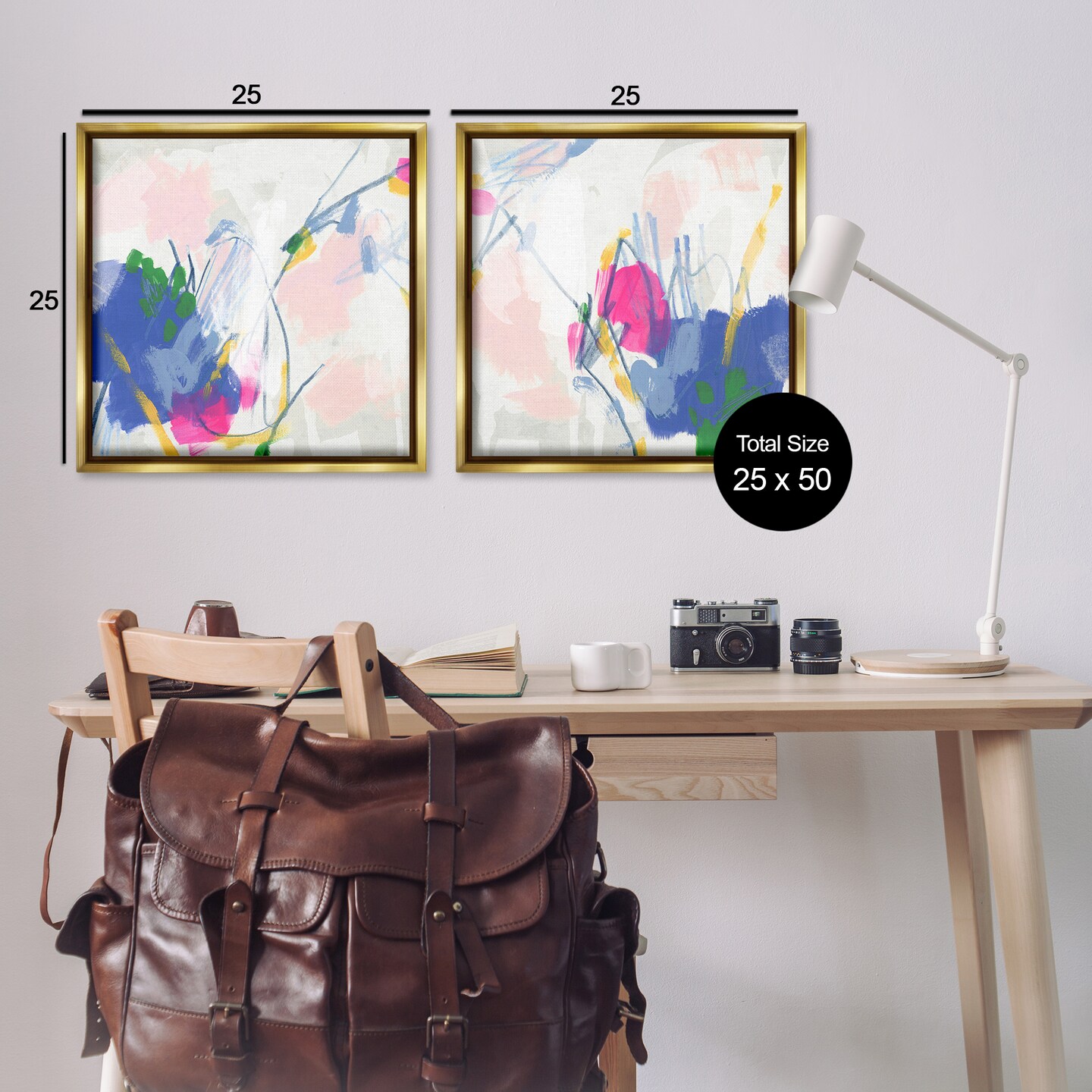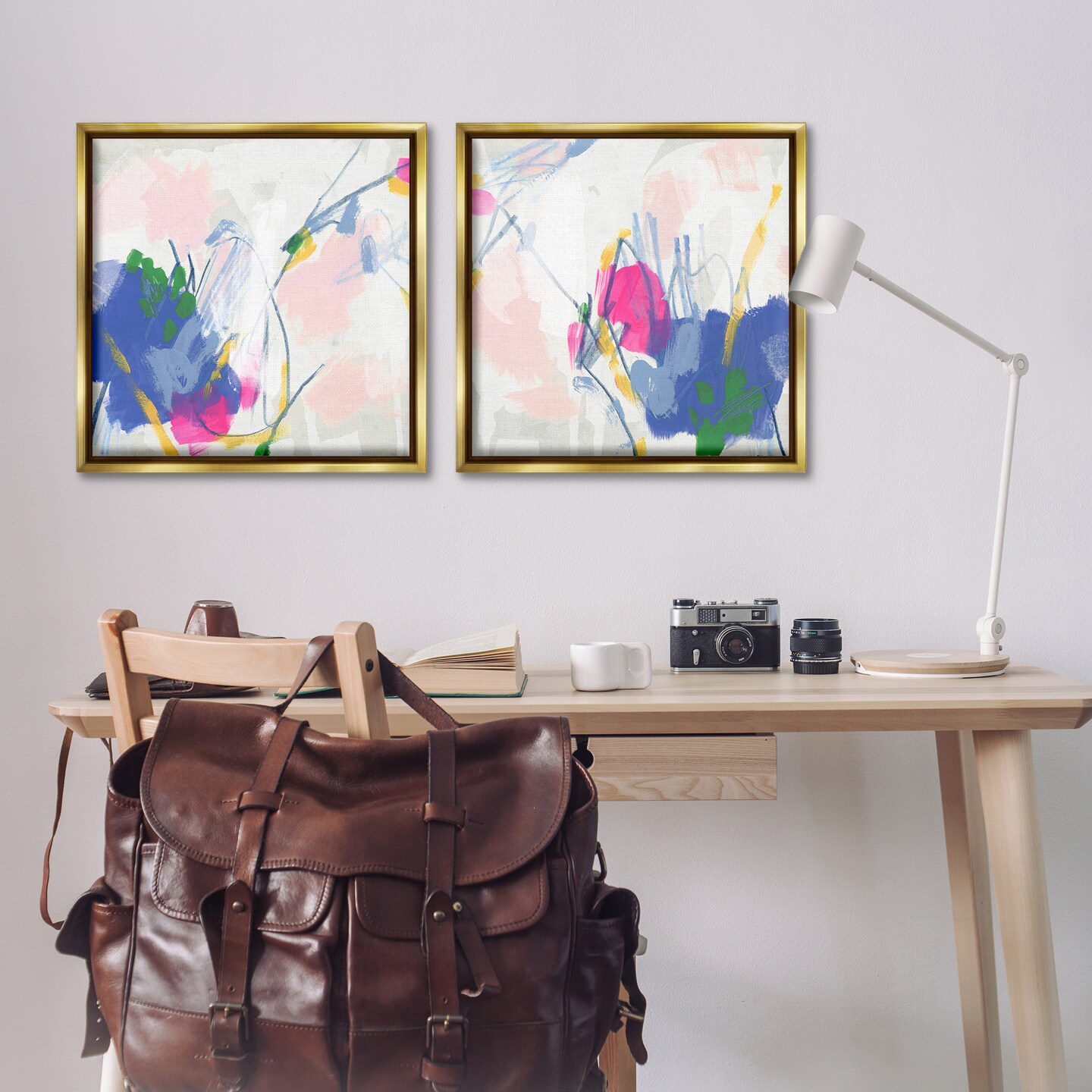 Stupell Industries Pink Blue Pop Abstract 2 pc Framed Floater Canvas Wall Art Set Design by June Erica Vess