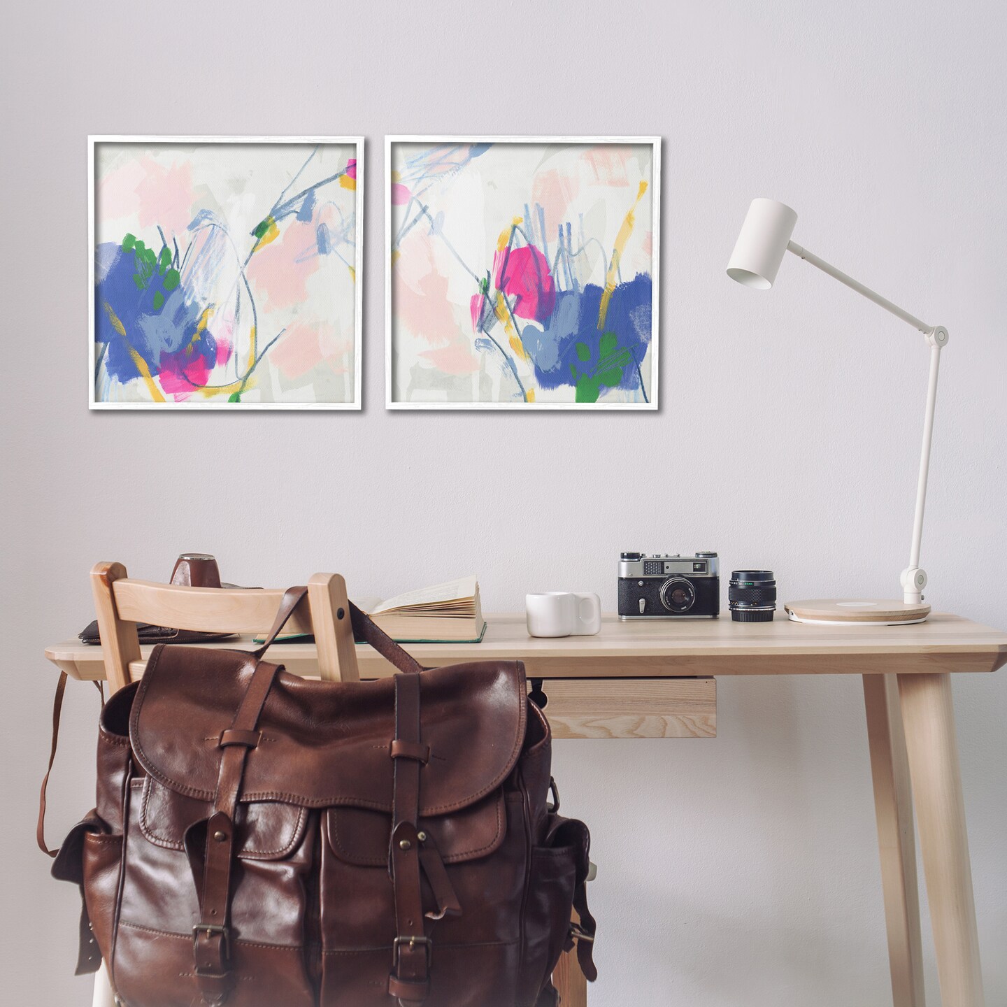 Stupell Industries Pink Blue Pop Abstract 2 pc Framed Giclee Wall Art Set Design by June Erica Vess