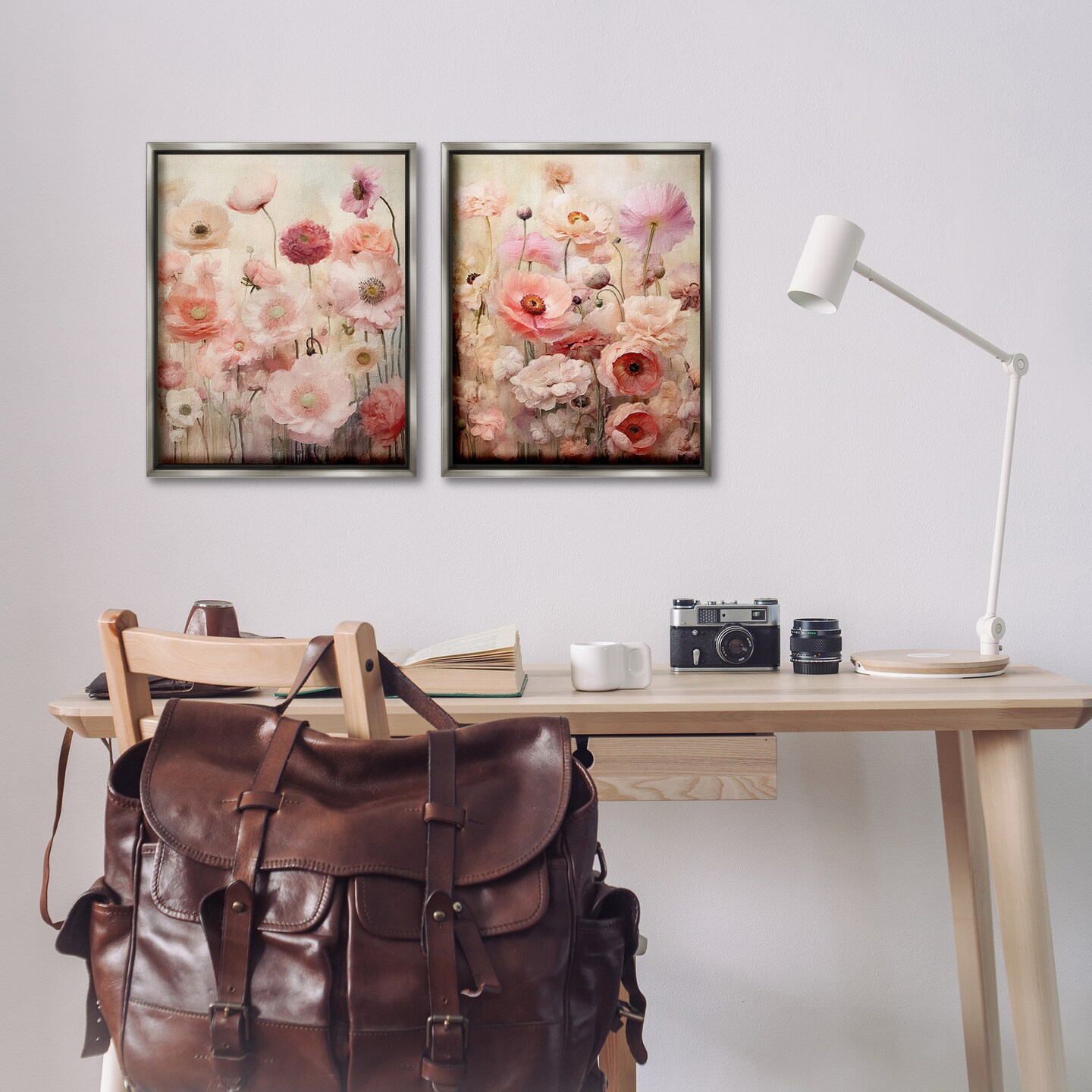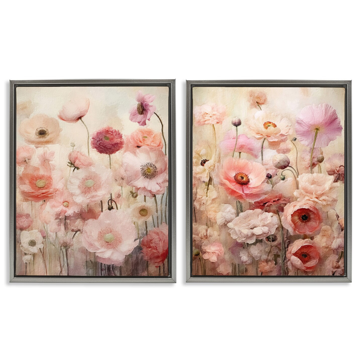 Stupell Industries Pink Blush Floral Field 2 pc Framed Floater Canvas Wall Art Set Design by RileyB