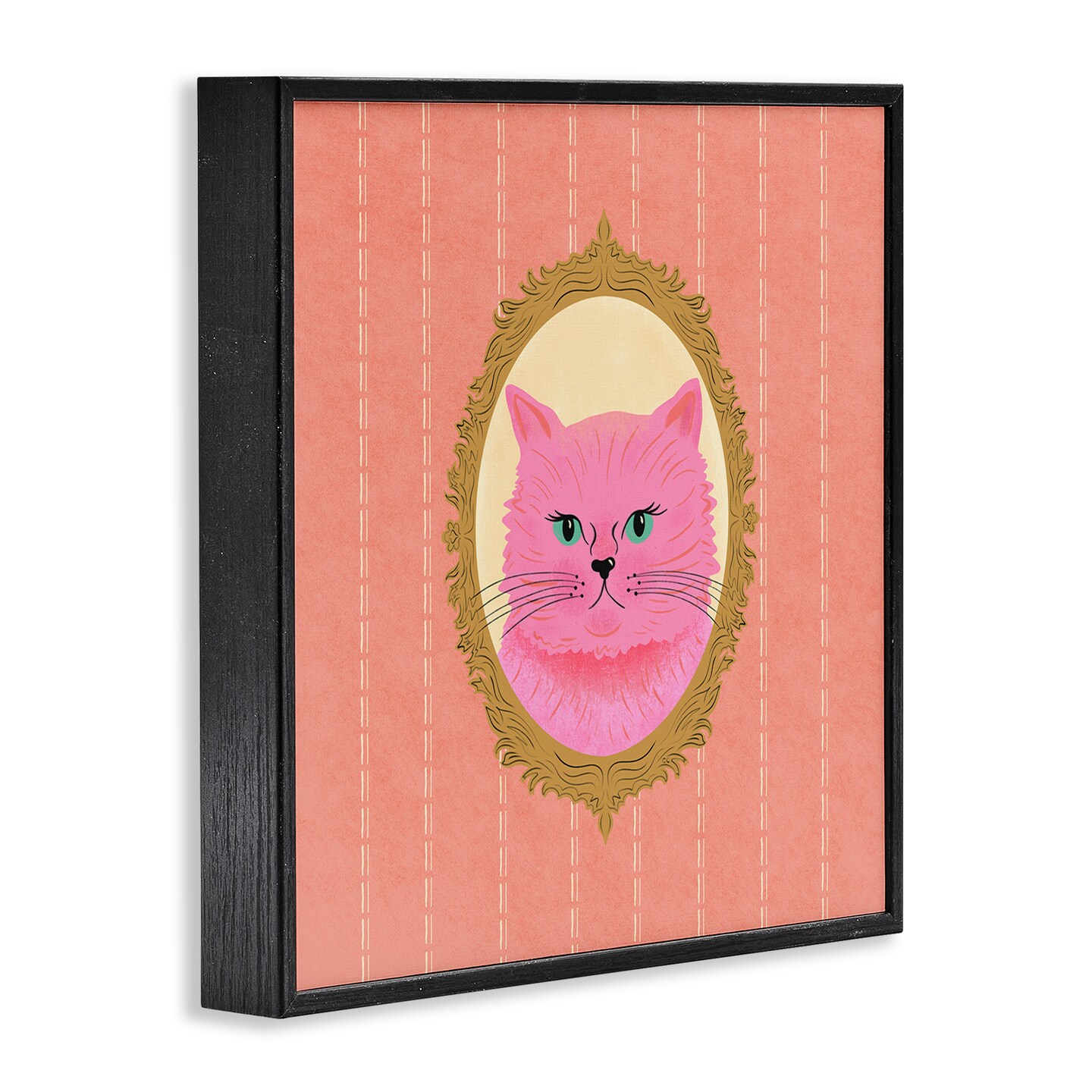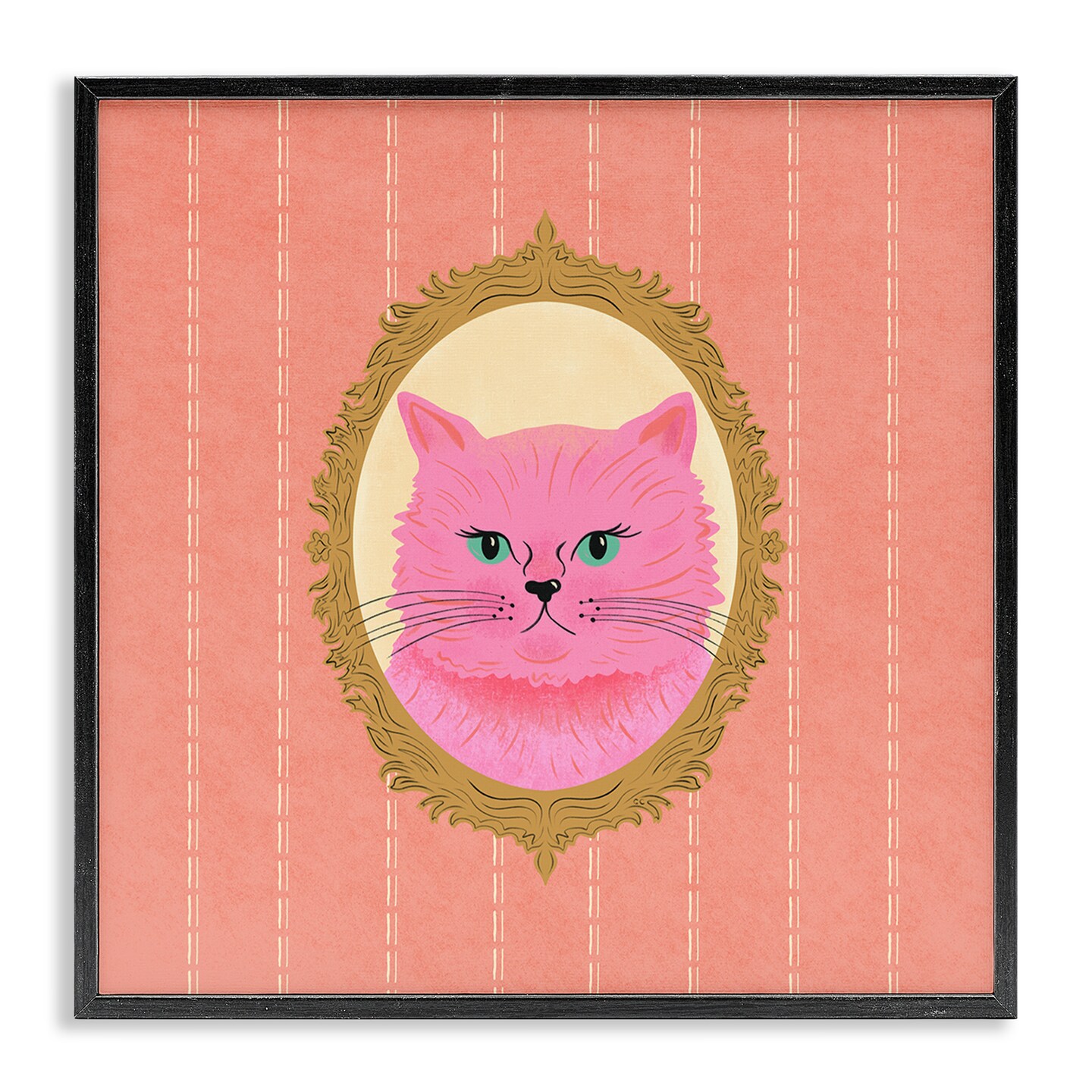 Stupell Industries Pink Cat Portrait Framed Giclee Wall Art Design by Carrie Cantwell