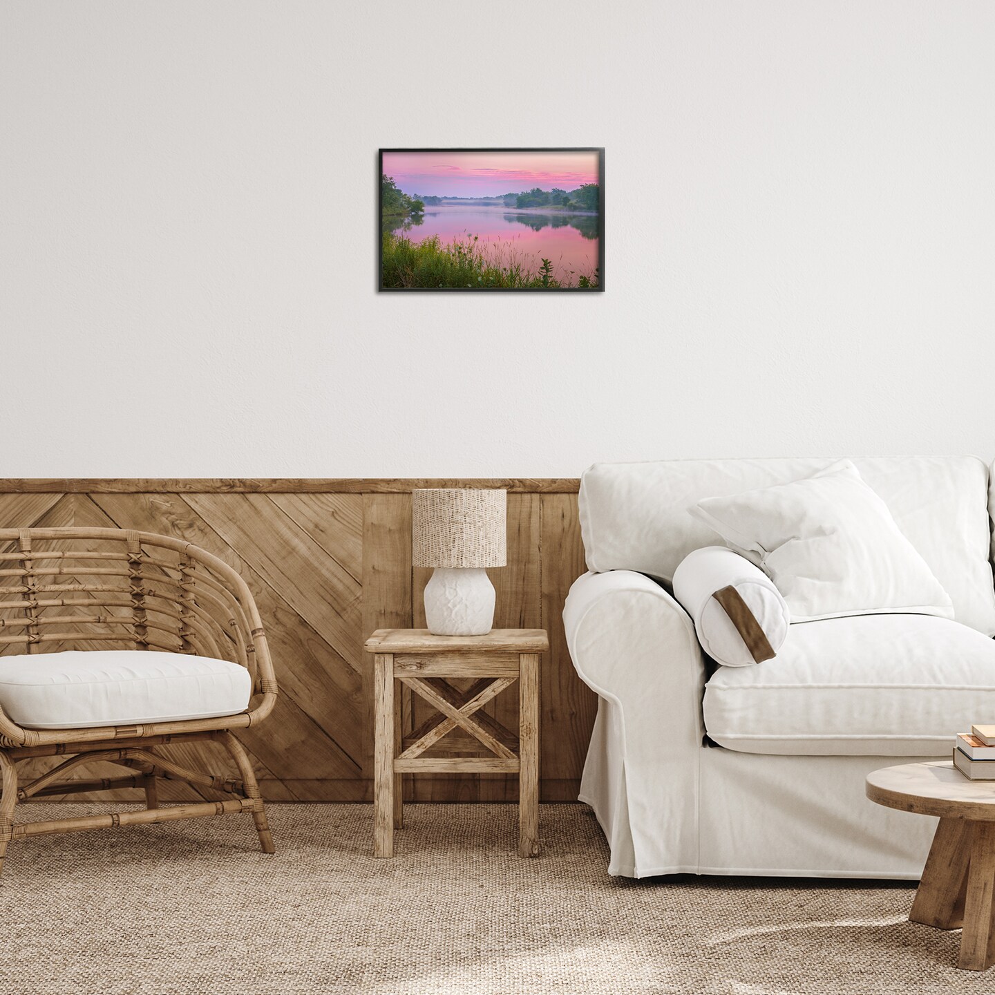 Stupell Industries Pink Dawn Sunrise Lake Framed Giclee Wall Art Design by Marty Hulsebos