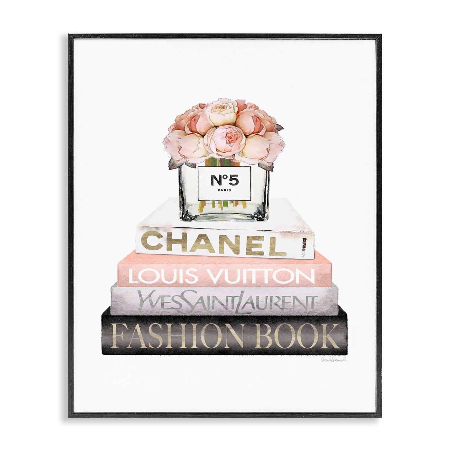 Stupell Industries Pink Fashion Book Stack Framed Giclee Art