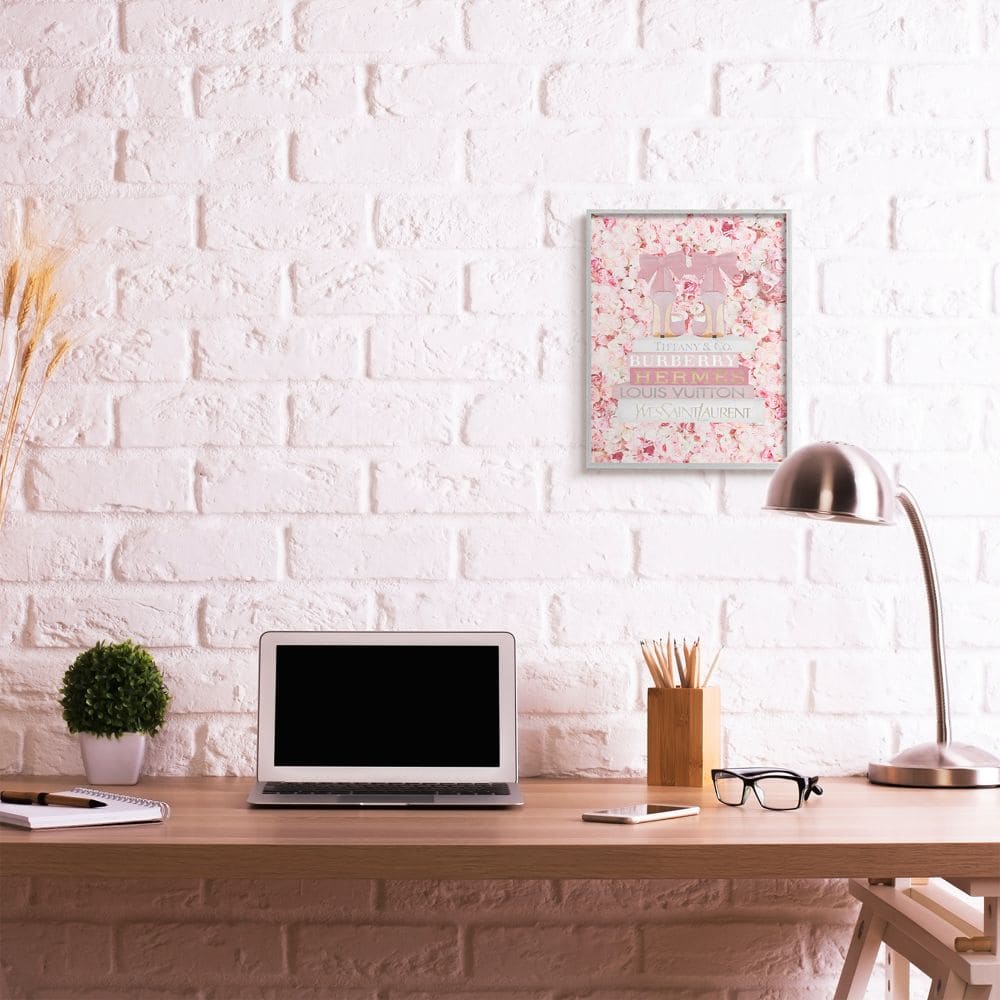 Stupell Industries Pink Fashion Heals with Glam Books and Rose Details Framed Wall Art