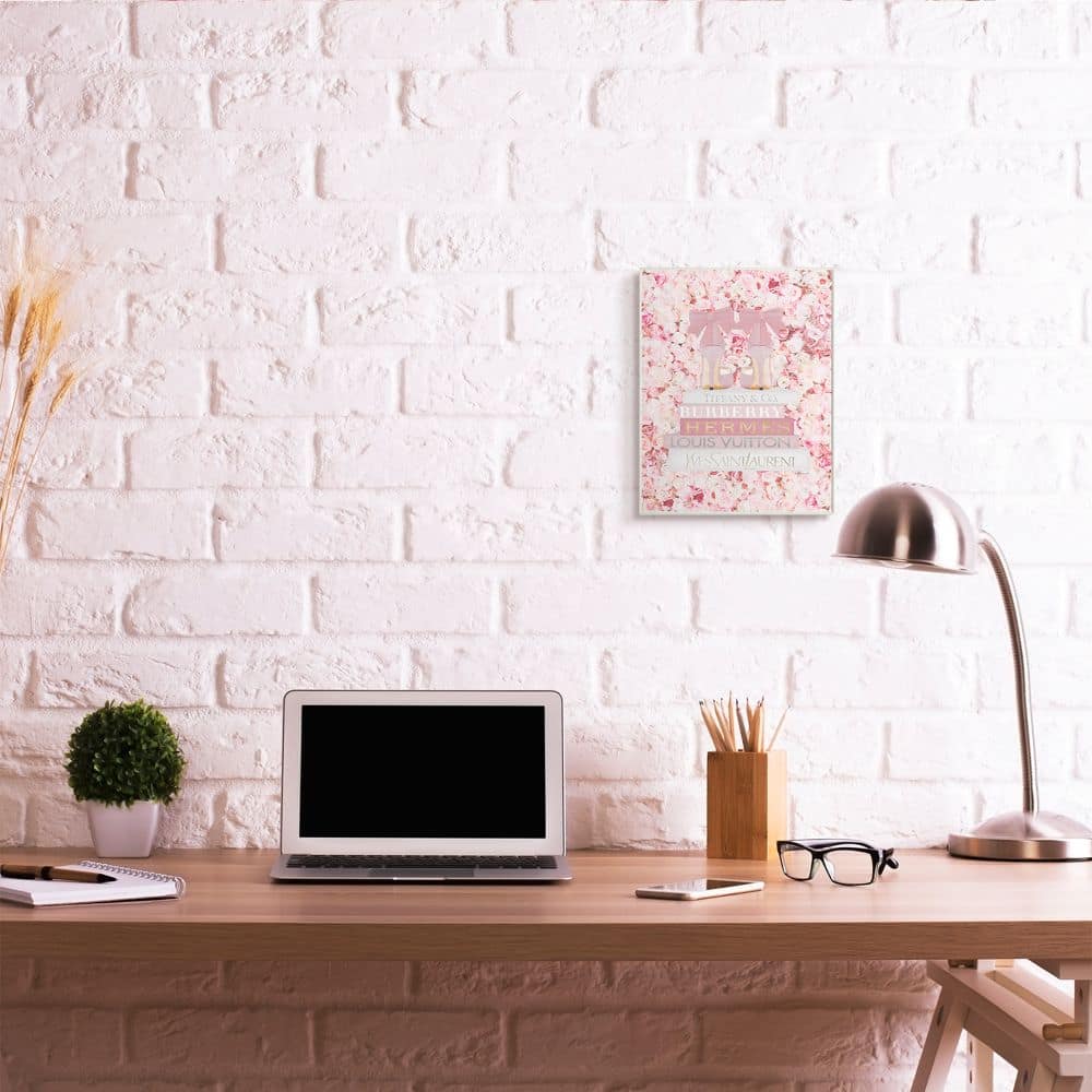 Stupell Industries Pink Fashion Heals with Glam Books and Rose Details Wood Wall Plaque