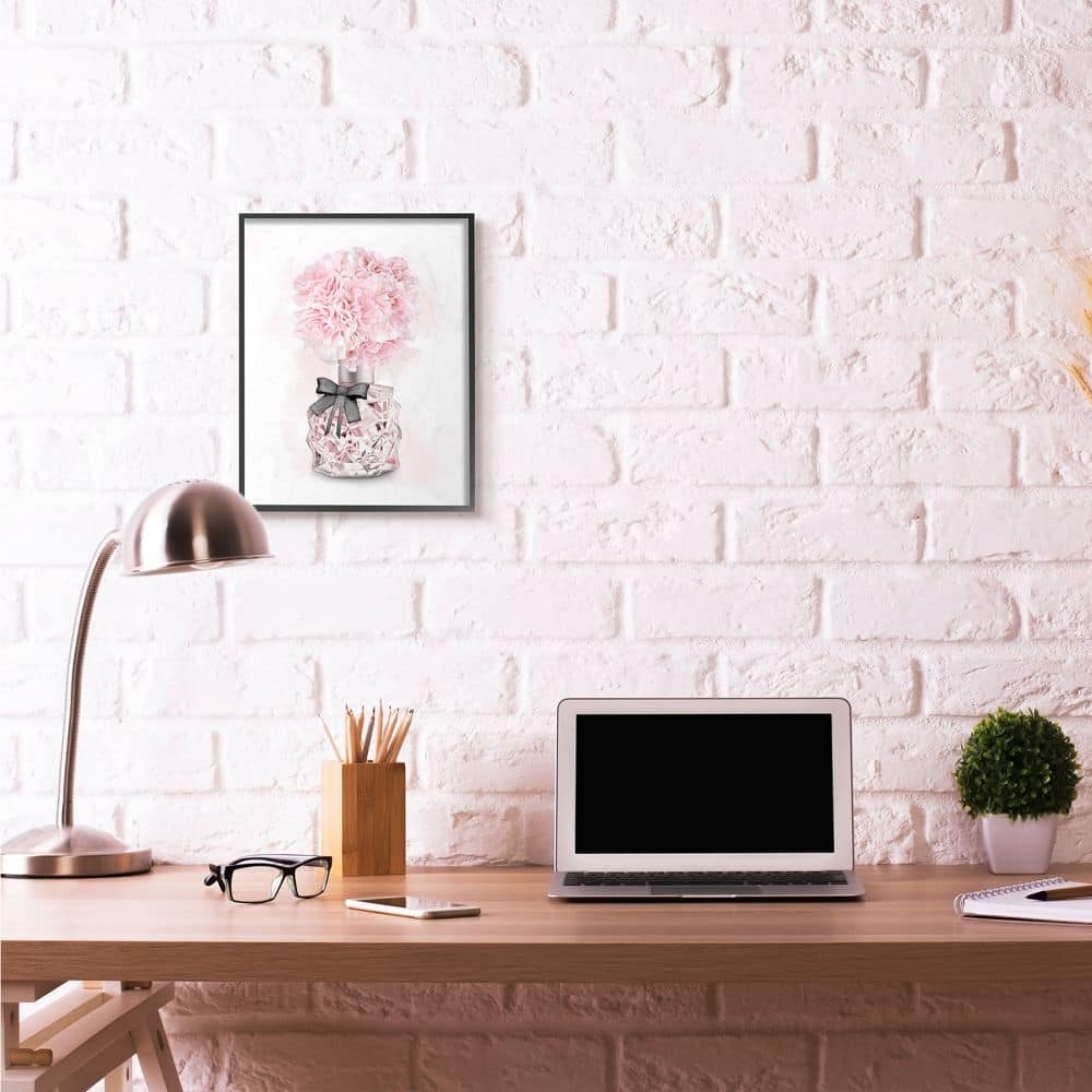 Stupell Industries Pink Flower Perfume Glam Fashion Design Framed Wall Art