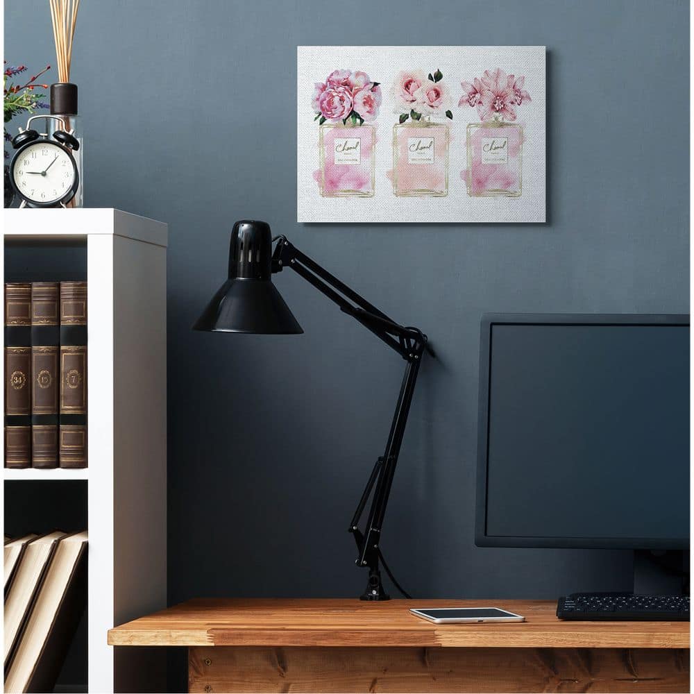 Stupell Industries Pink Flowers And Perfumes Glam Fashion Watercolor Design Canvas Wall Art