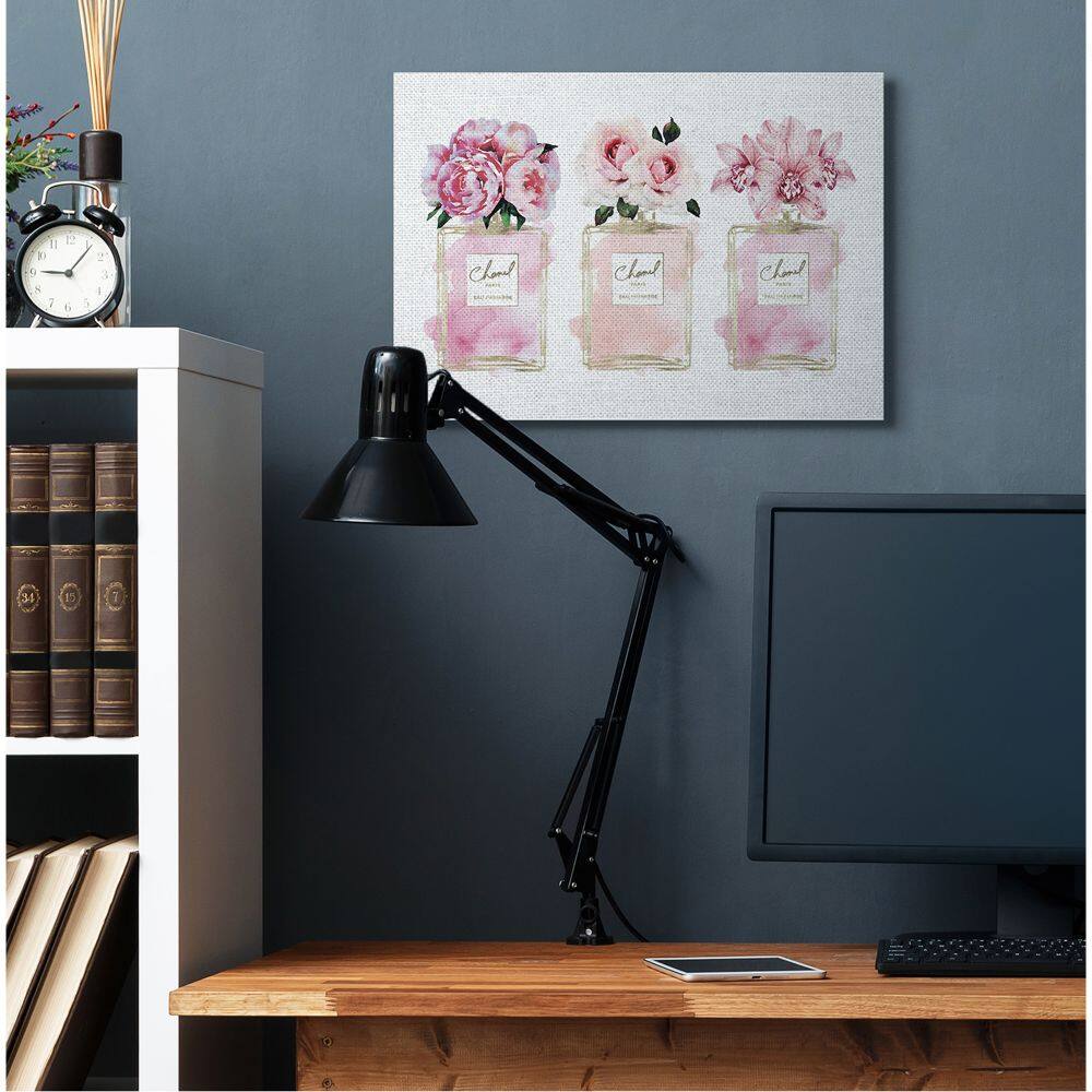 Stupell Industries Pink Flowers And Perfumes Glam Fashion Watercolor Design Canvas Wall Art