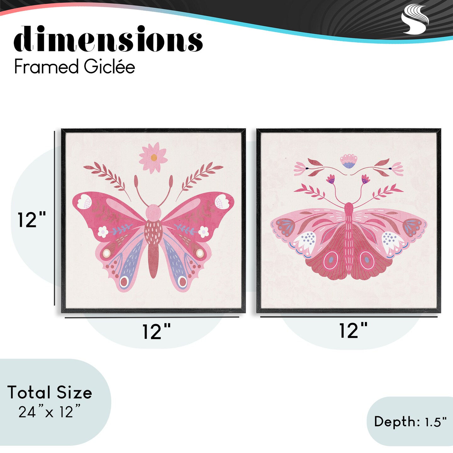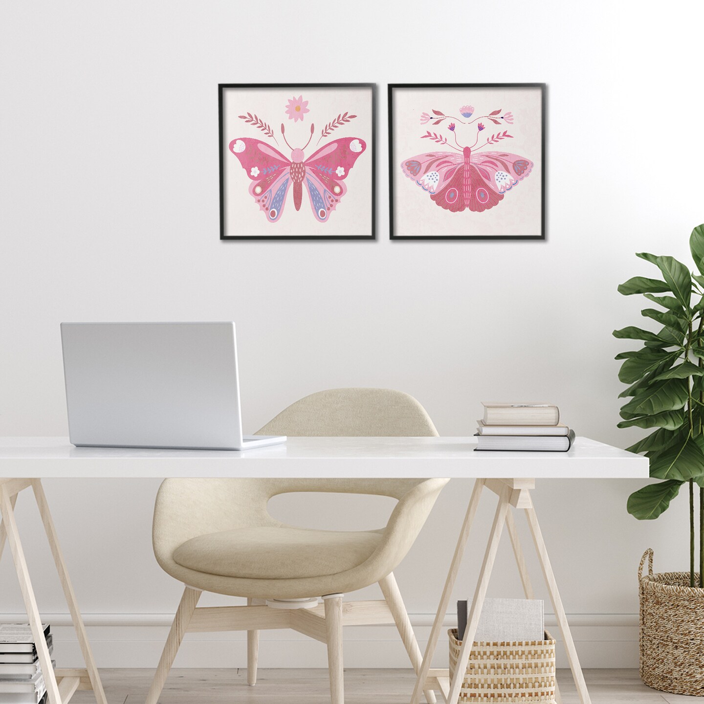 Stupell Industries Pink Folk Butterflies 2pc Framed Giclee Set, design by Kim Allen