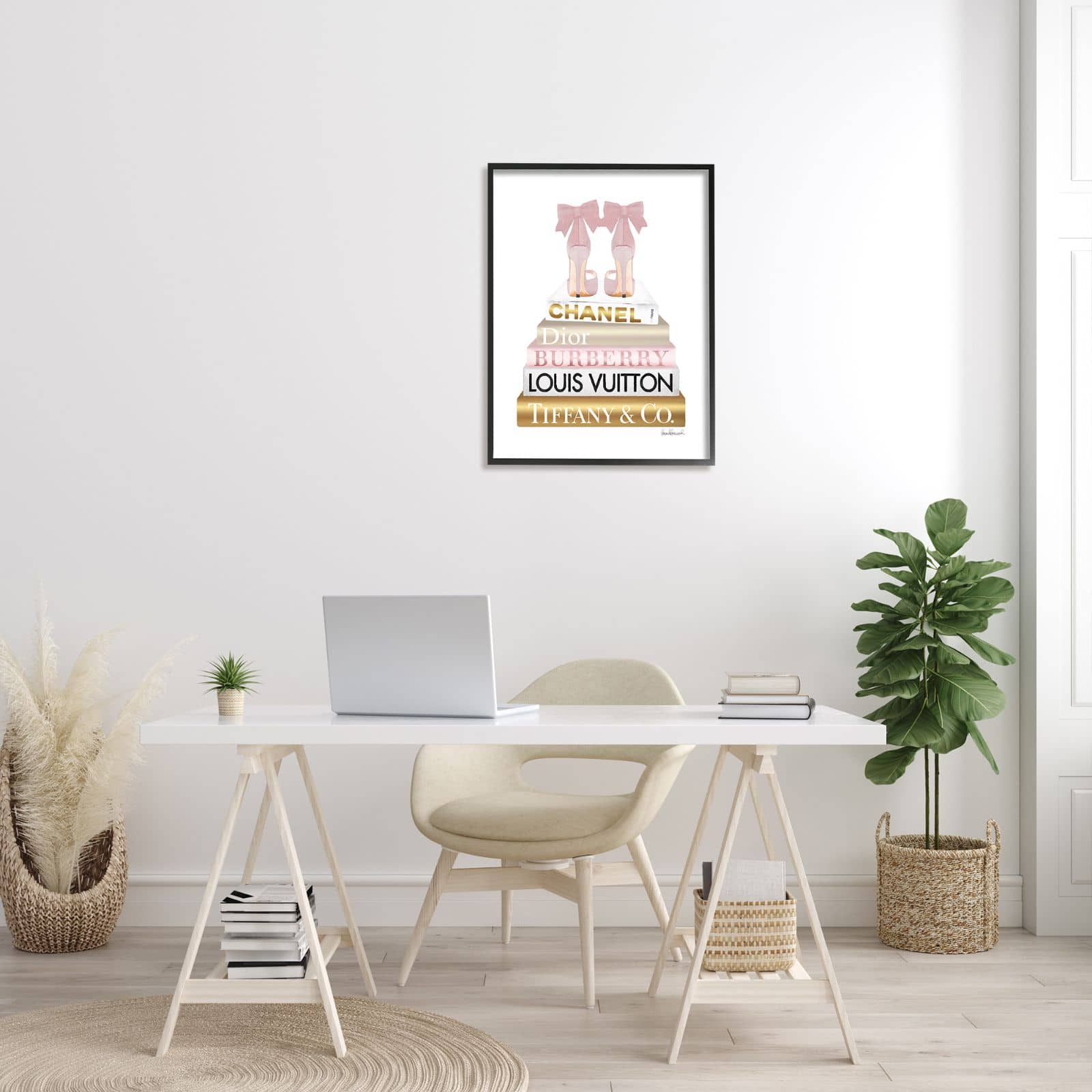 Stupell Industries Pink Gold Heels Bookstack Glam Fashion Design Framed Wall Art