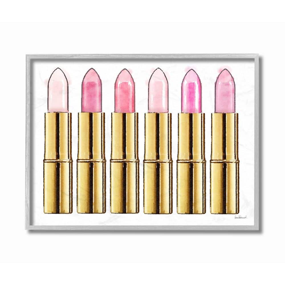 Stupell Industries Pink Gold Lipstick Glam Fashion Watercolor in Gray Frame Wall Art