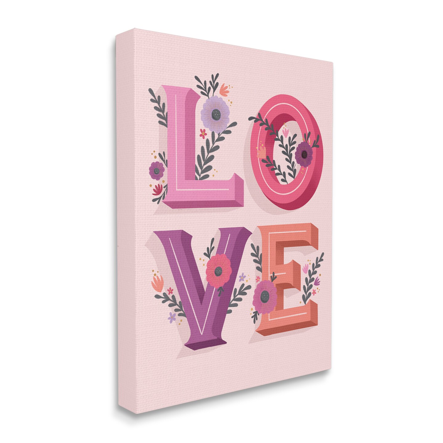 Stupell Industries Pink Love Spring Flowers Canvas Wall Art