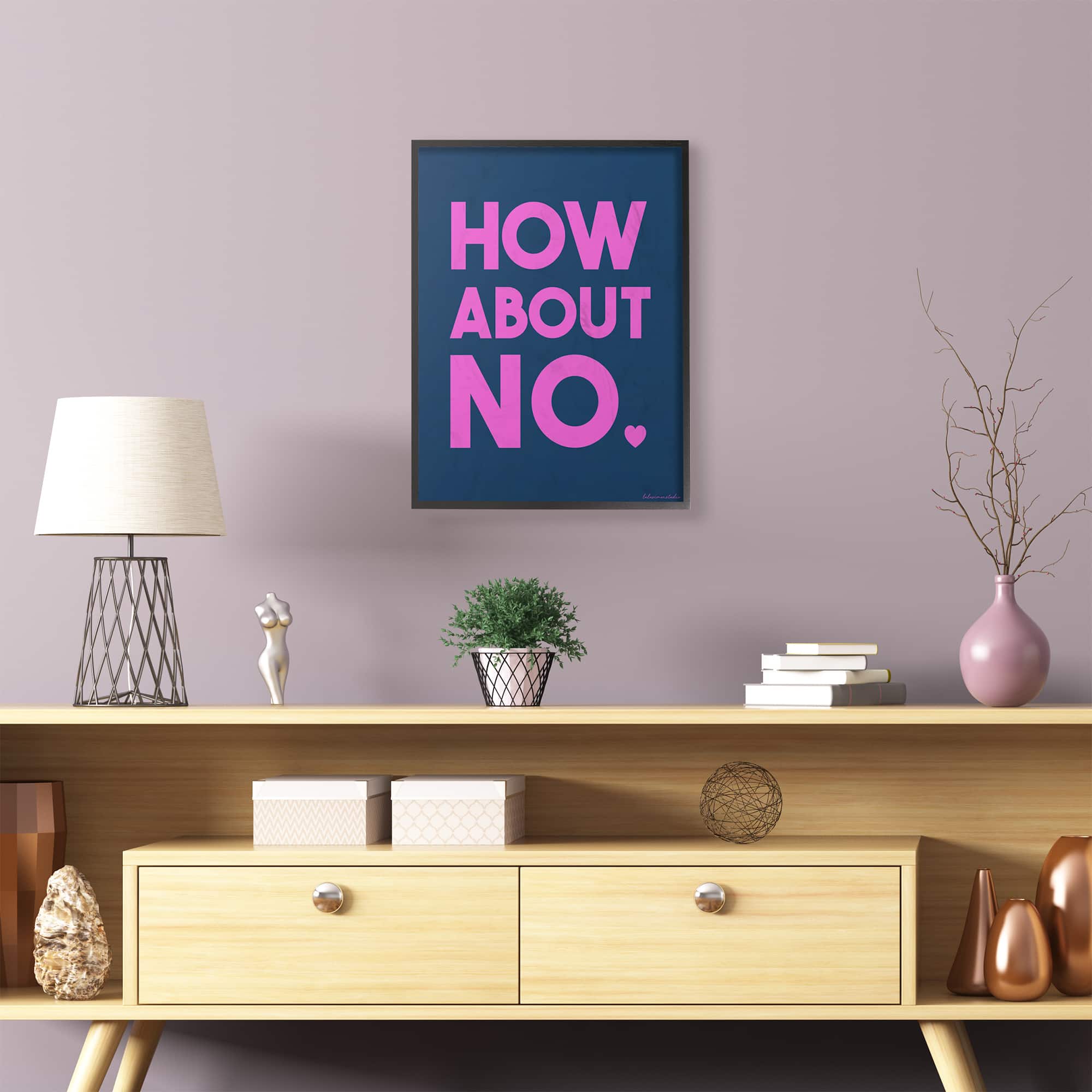 Stupell Industries Pink & Navy Blue How About No Wall Accent with Black Frame
