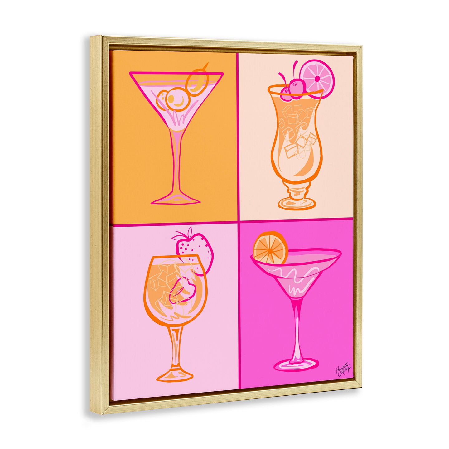 Stupell Industries Pink & Orange Cocktails Framed Floater Canvas Wall Art Design by Elizabeth Medley