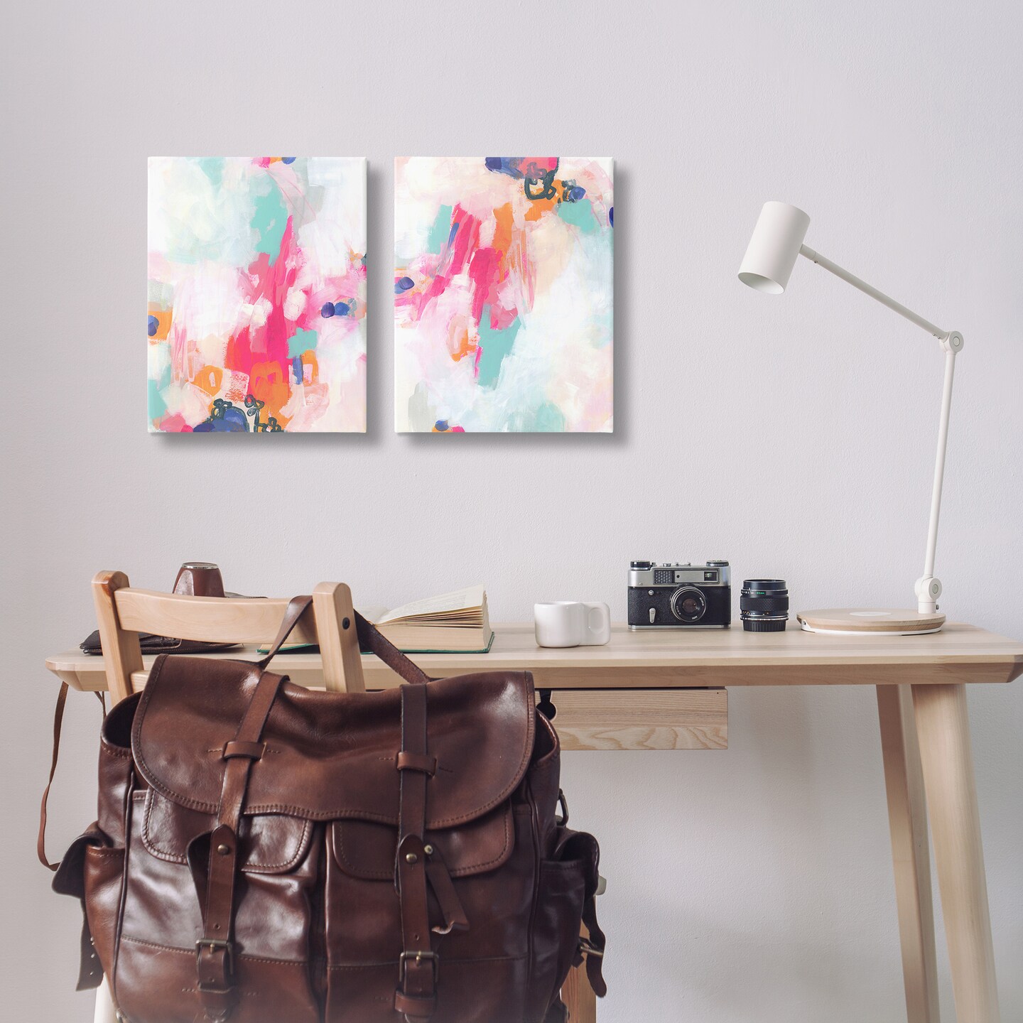 Stupell Industries Pink & Pastel Splotches 2pc Canvas Wall Art Set Design by June Erica Vess