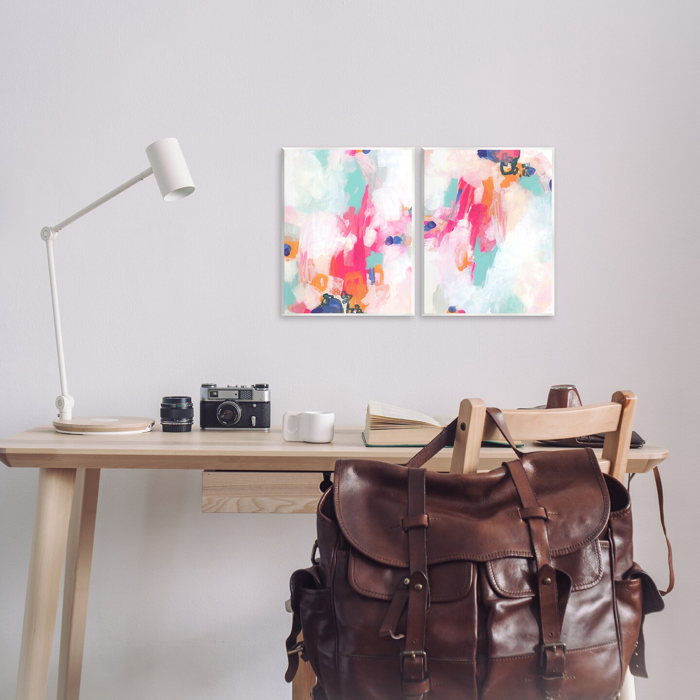 Stupell Industries Pink & Pastel Splotches 2pc Wall Plaque Art Set Design by June Erica Vess