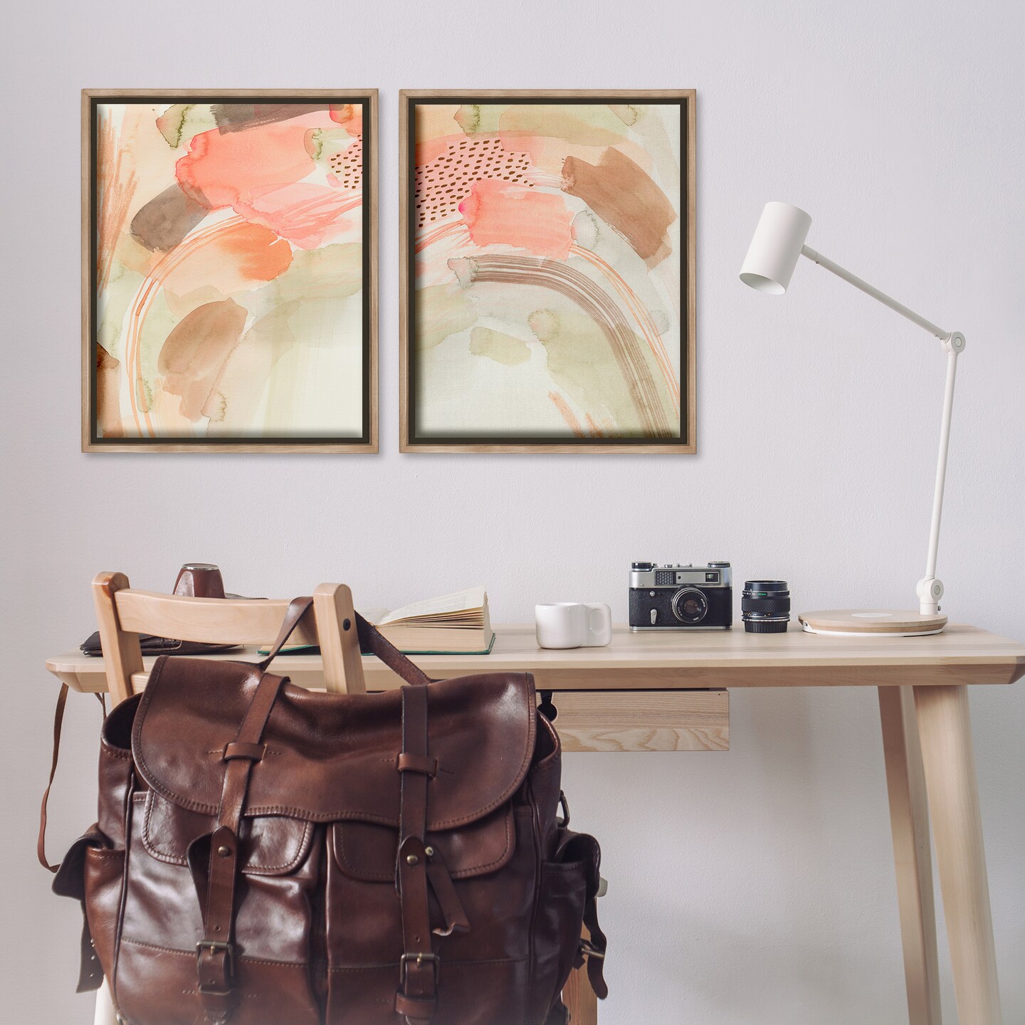 Stupell Industries Pink Peach Abstract Watercolor 2 pc Framed Floater Canvas Wall Art Set Design by Grace Popp