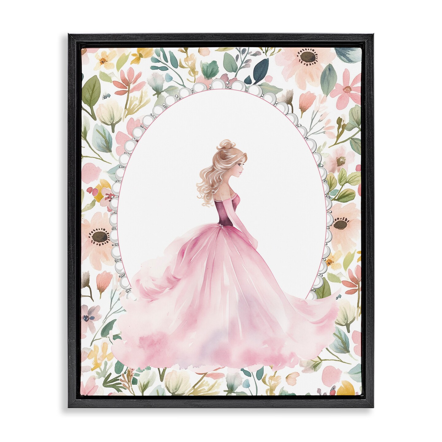 Stupell Industries Pink Princess with Pearl Border Floating Frame, design by Christine Simpson Art