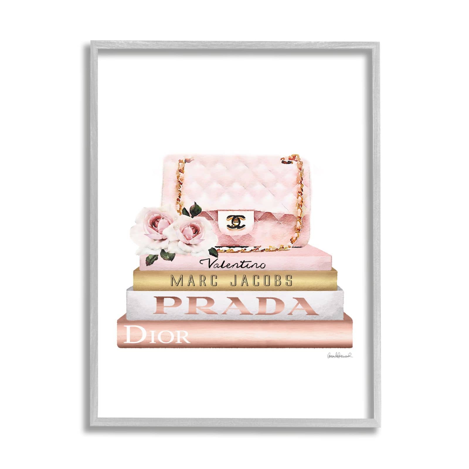 Stupell Industries Pink Purse Gold Bookstack Glam Fashion Watercolor Design Framed Wall Art