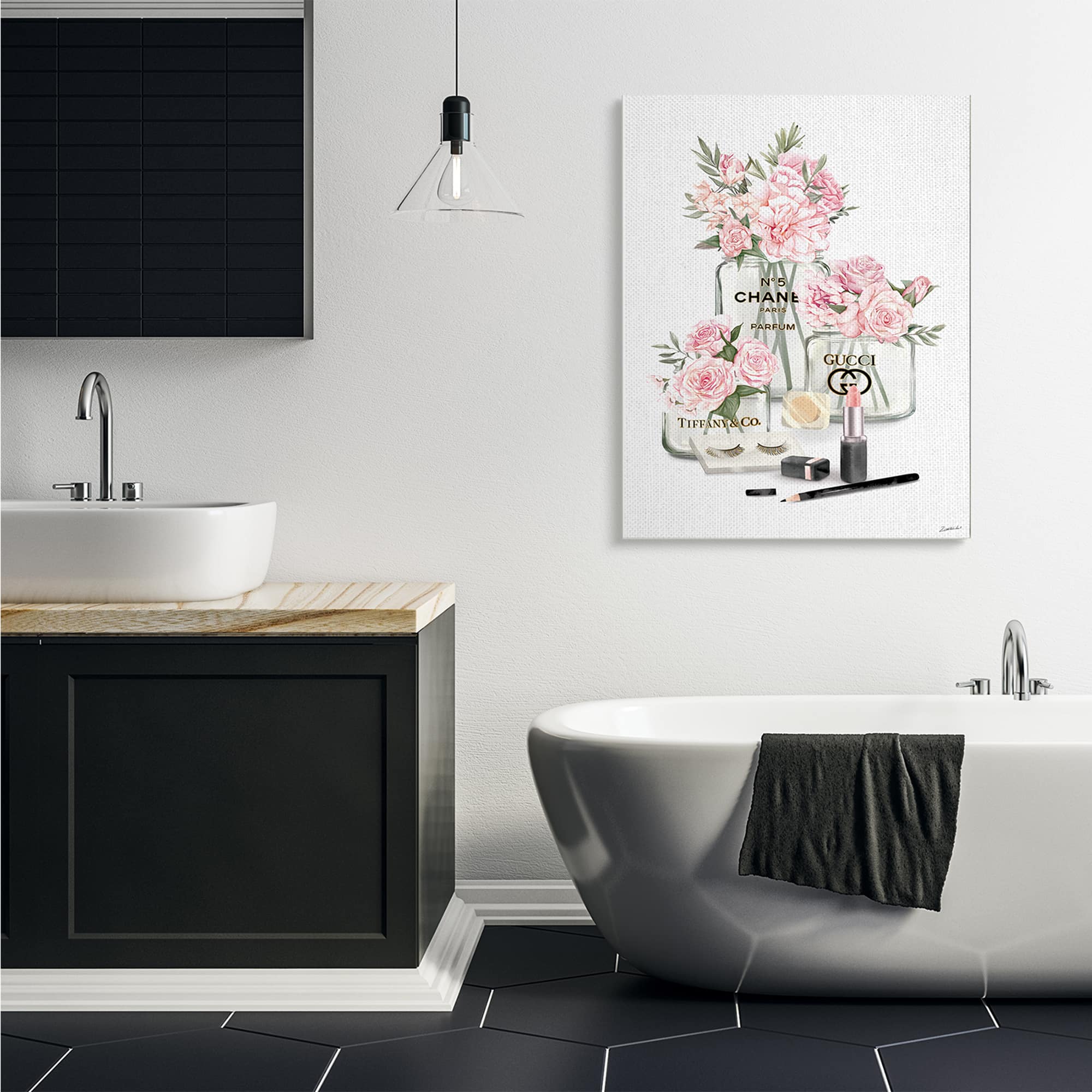 Stupell Industries Pink Rose Florals in Glam Fashion Jars Canvas Wall Art