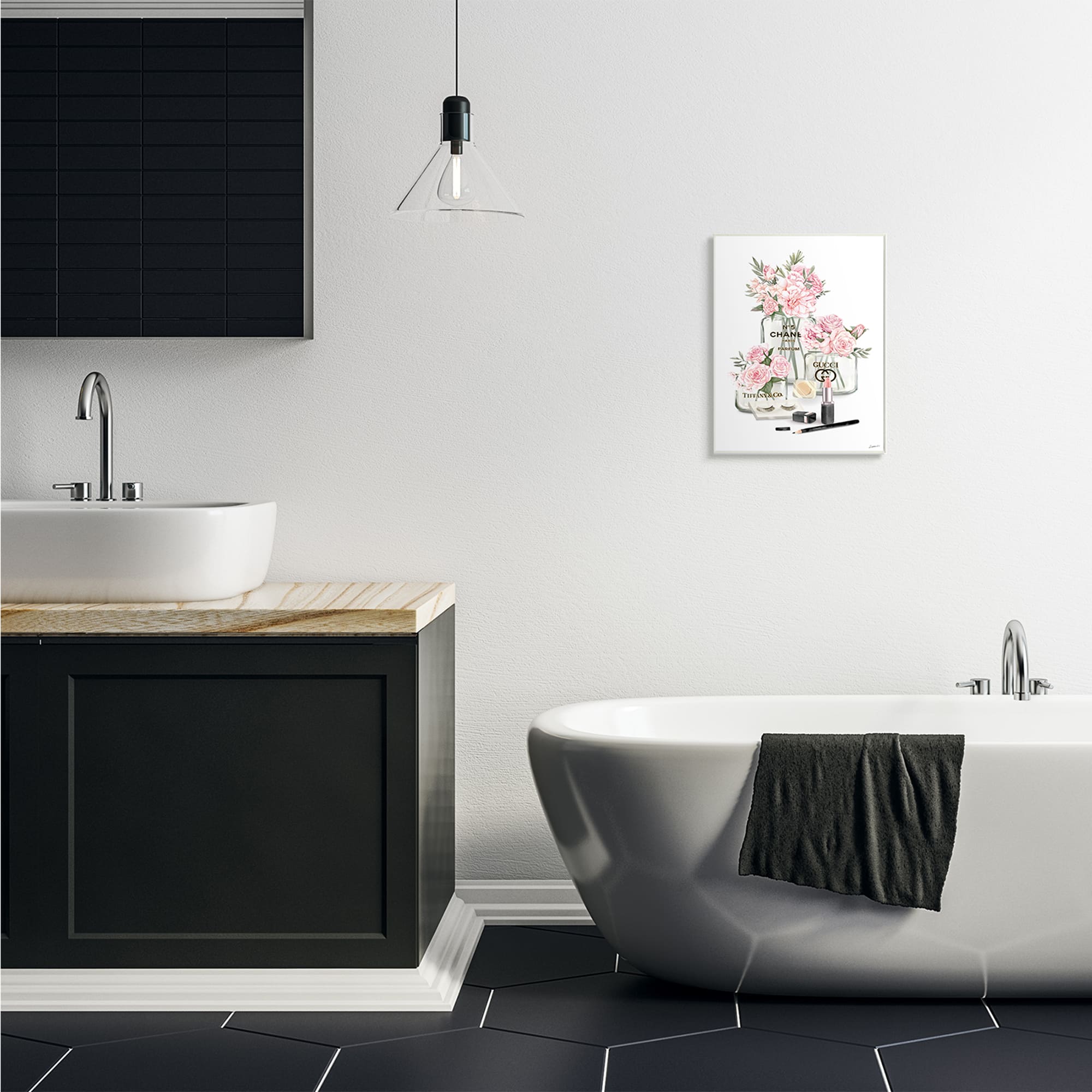 Stupell Industries Pink Rose Florals in Glam Fashion Jars Wood Wall Plaque