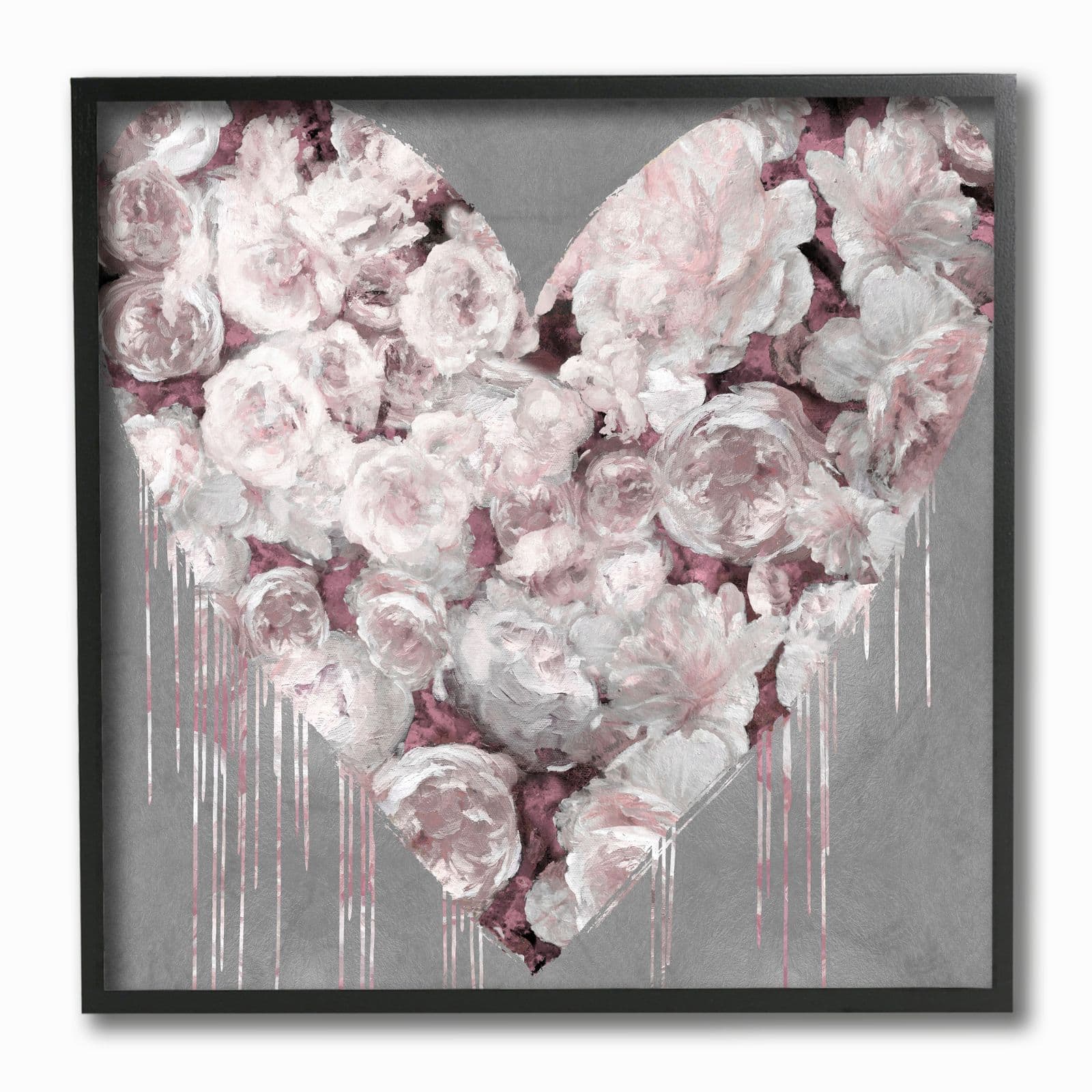 Stupell Industries Pink Rose Heart over Grey with Paint Drip Black Framed Wall Art