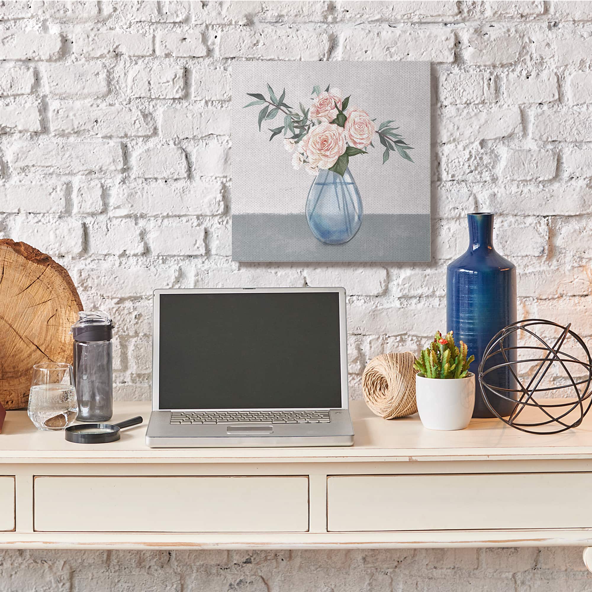 Stupell Industries Pink Roses Blue Teardrop Vase Soft Florals Canvas Wall Art