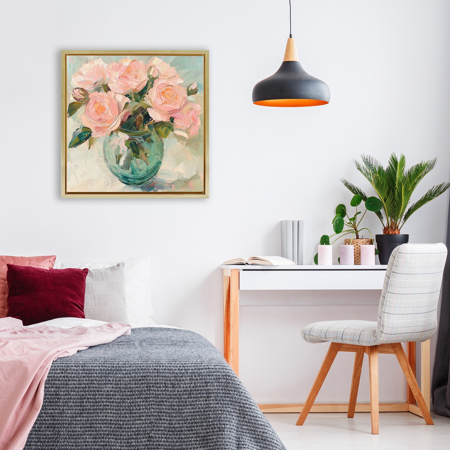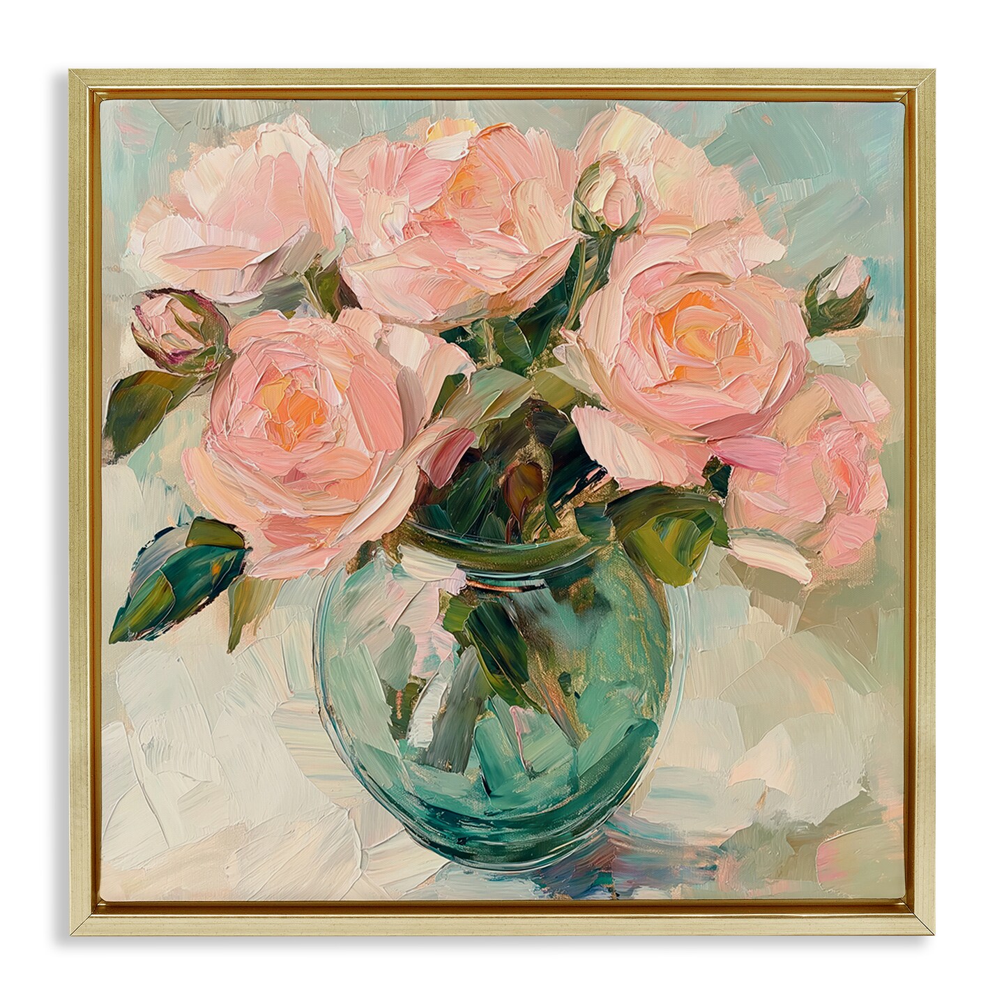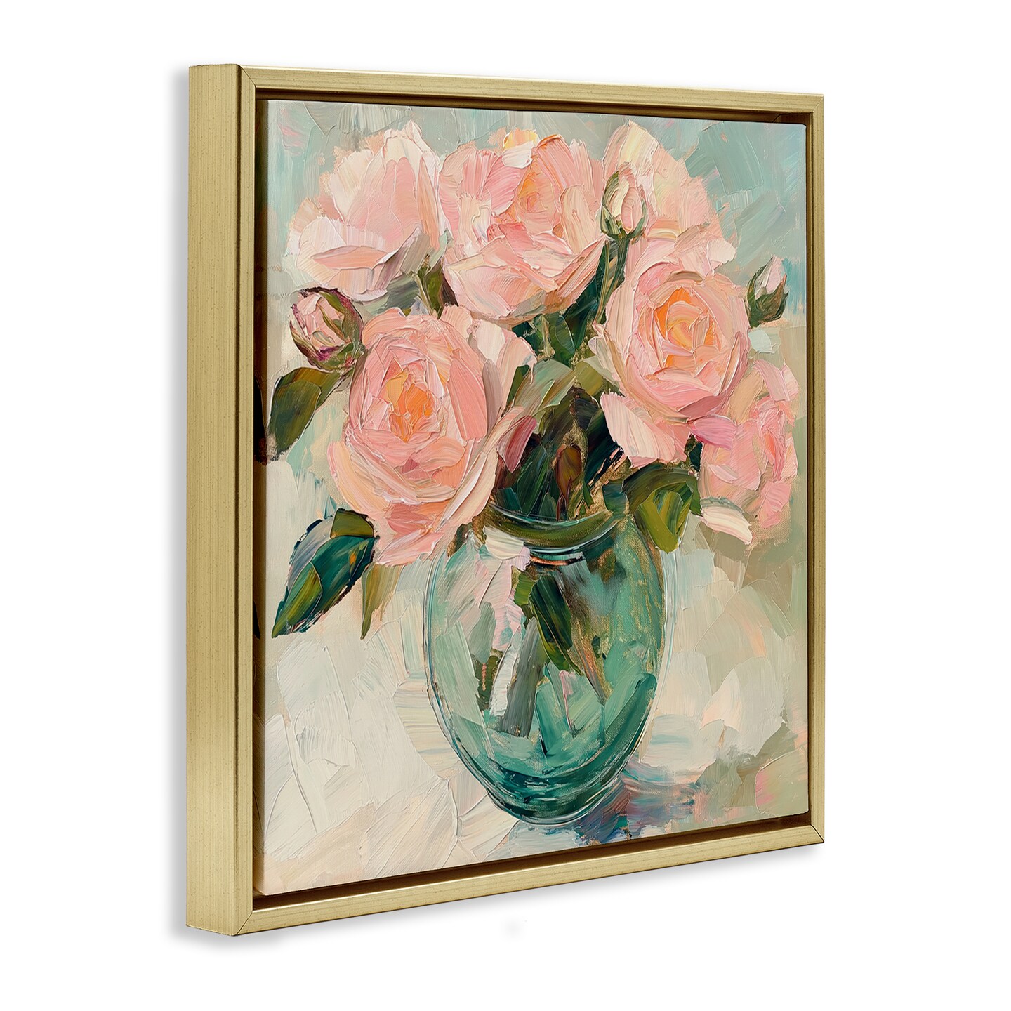 Stupell Industries Pink Roses in Green Vase Floating Frame, design by Gina Kelly