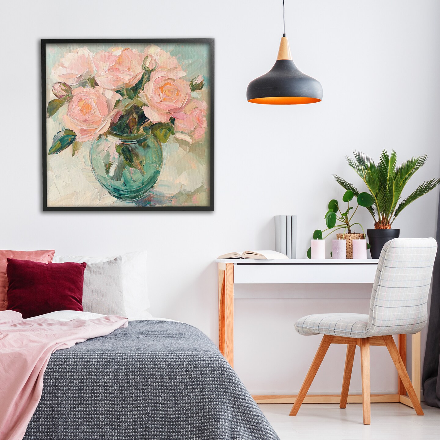 Stupell Industries Pink Roses in Green Vase Framed Giclee, design by Gina Kelly