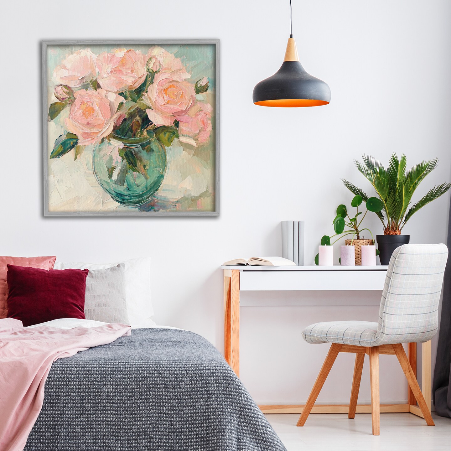 Stupell Industries Pink Roses in Green Vase Framed Giclee, design by Gina Kelly