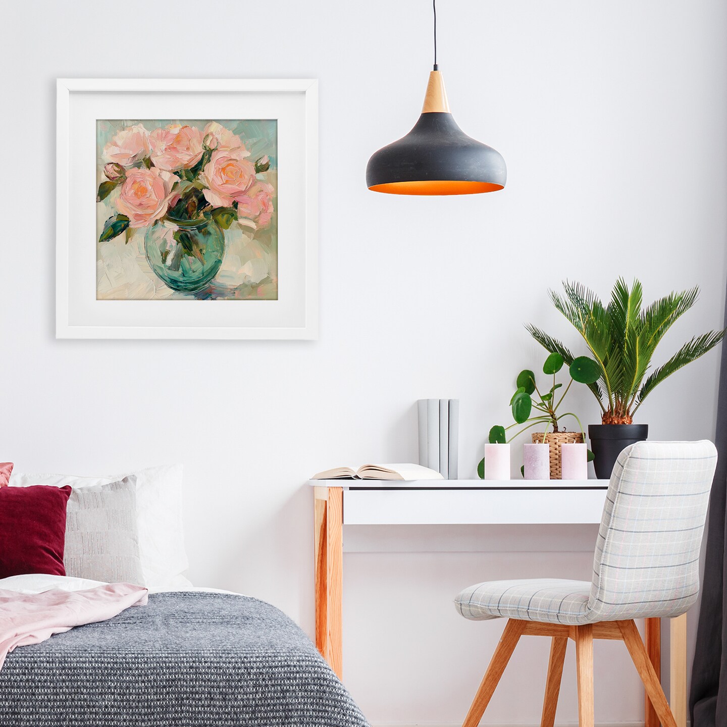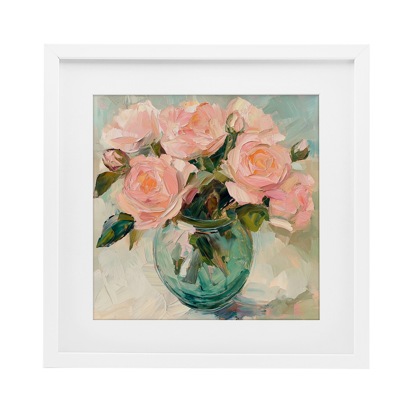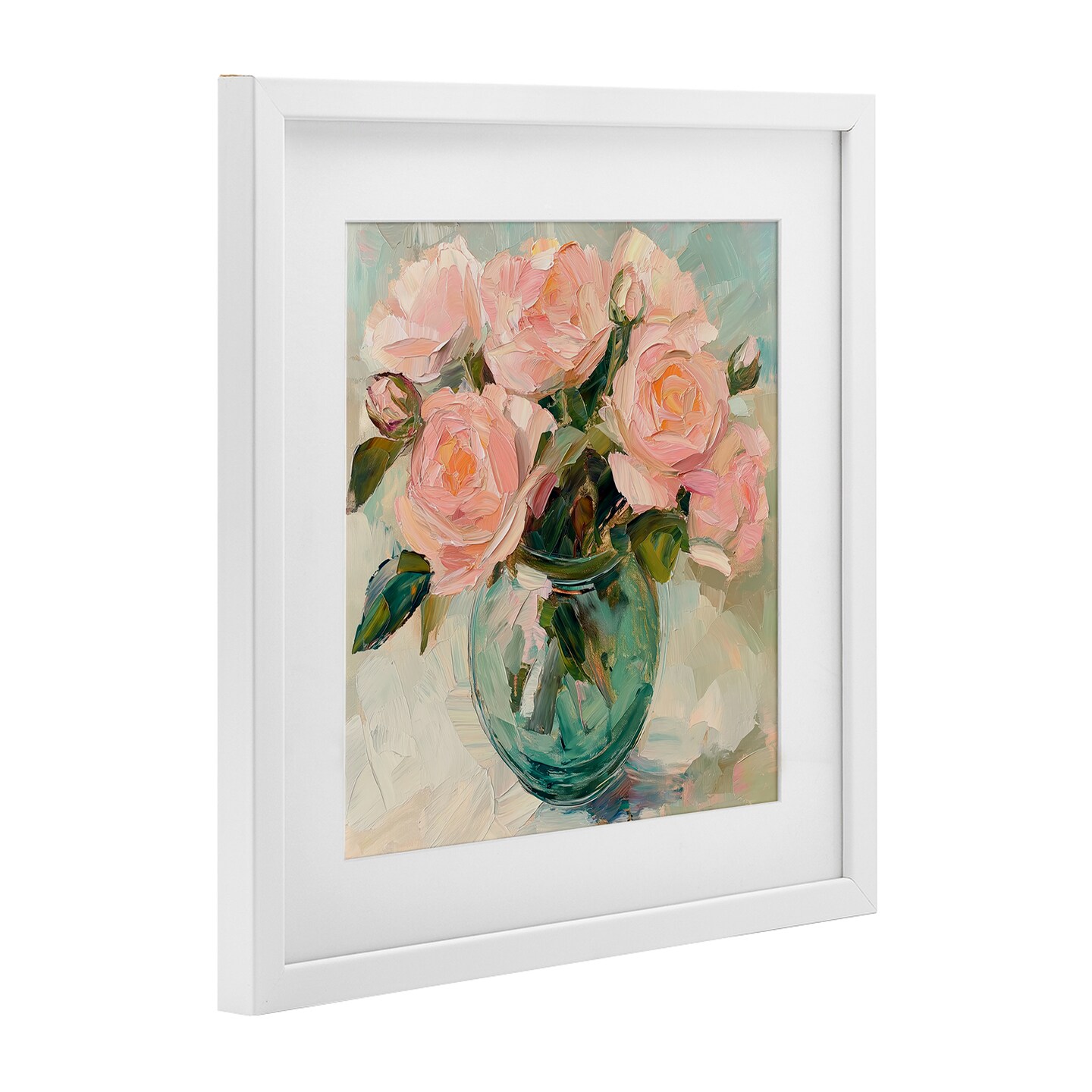 Stupell Industries Pink Roses in Green Vase Framed Print Under Glass, design by Gina Kelly