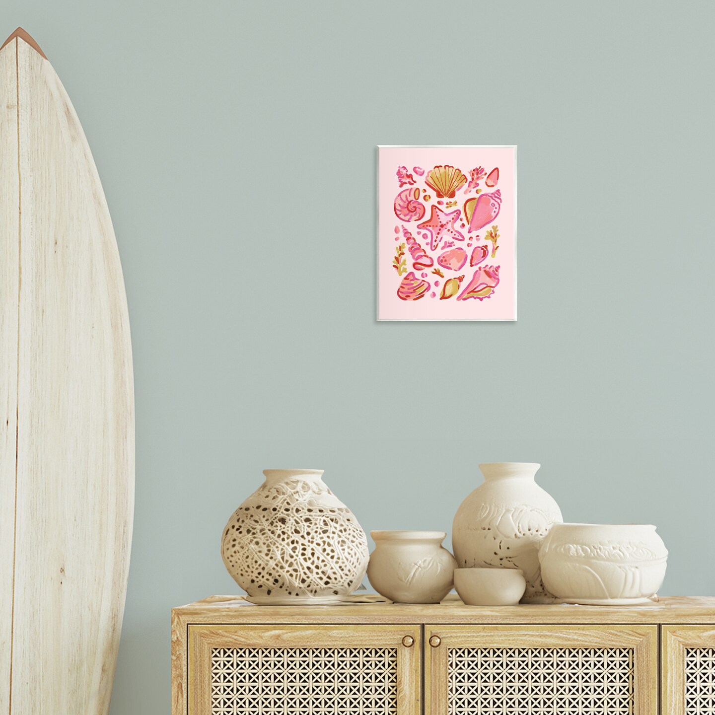 Stupell Industries Pink Sea Life Collection Wall Plaque Art Design by Nina Muis Surface Design