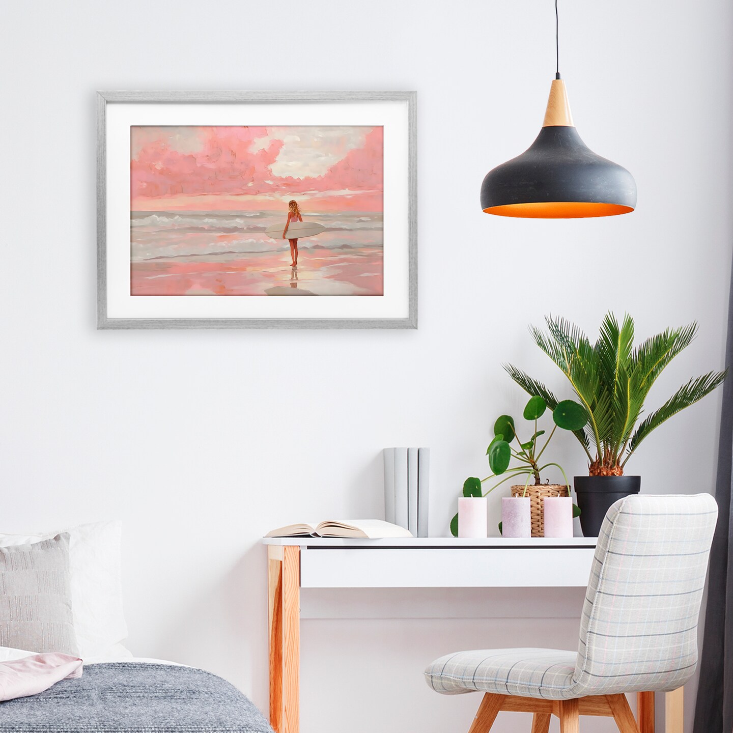 Stupell Industries Pink Sky Surfer Framed Print Under Glass, design by LSR Design Studio