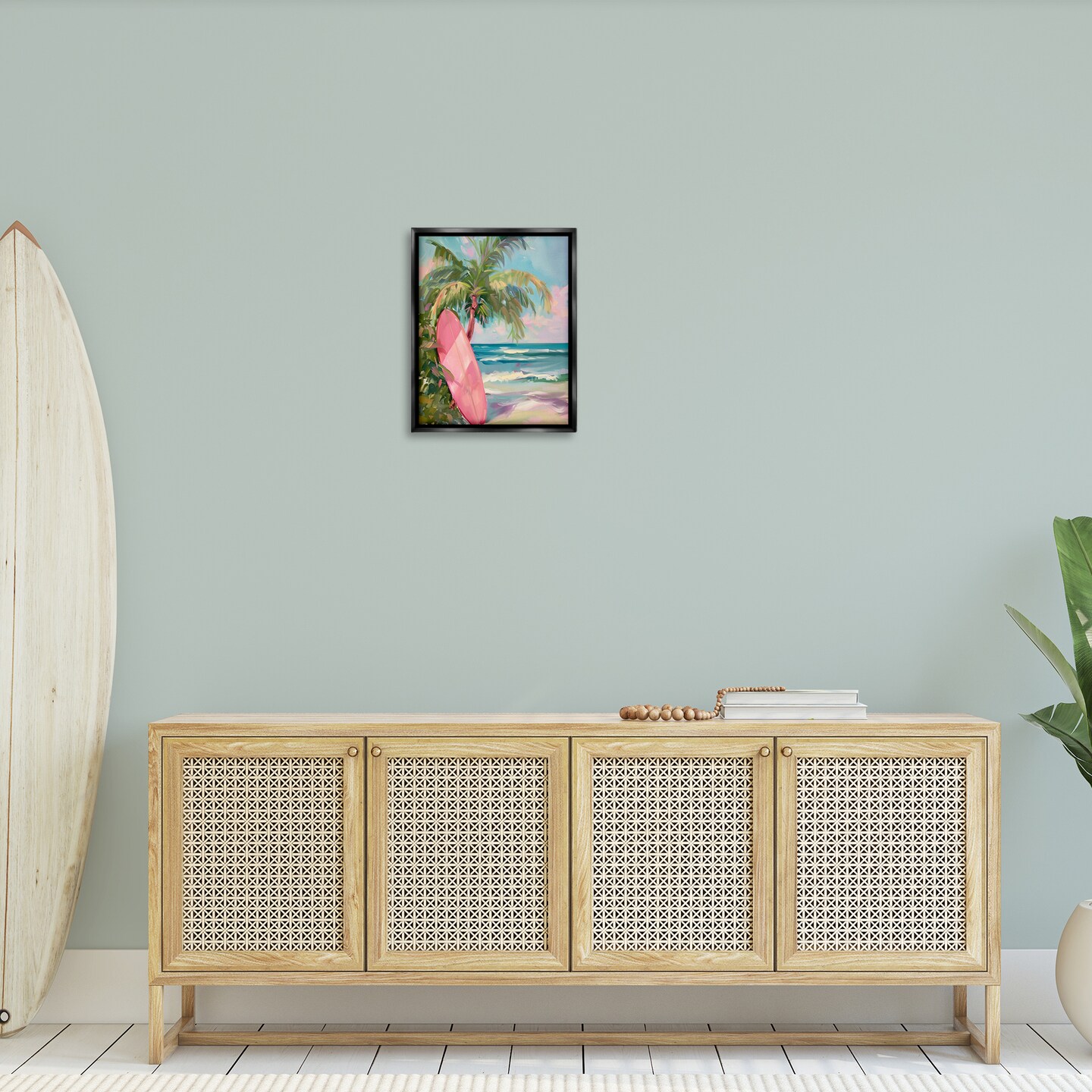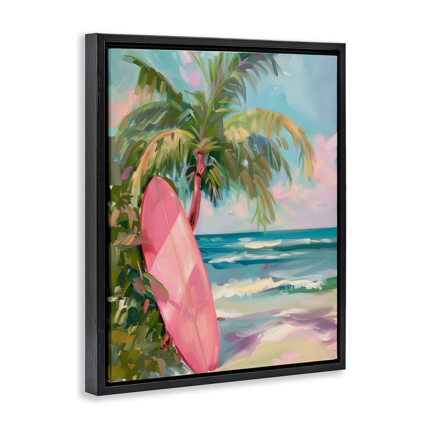 Stupell Industries Pink Surfboard on Beach Floating Frame Design by Arlington Prints