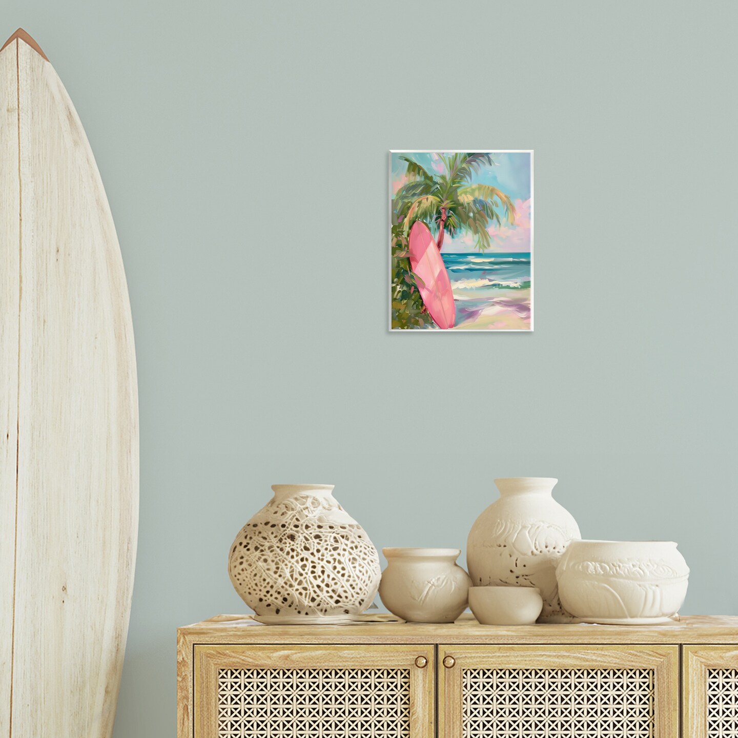 Stupell Industries Pink Surfboard on Beach Wall Plaque Design by Arlington Prints