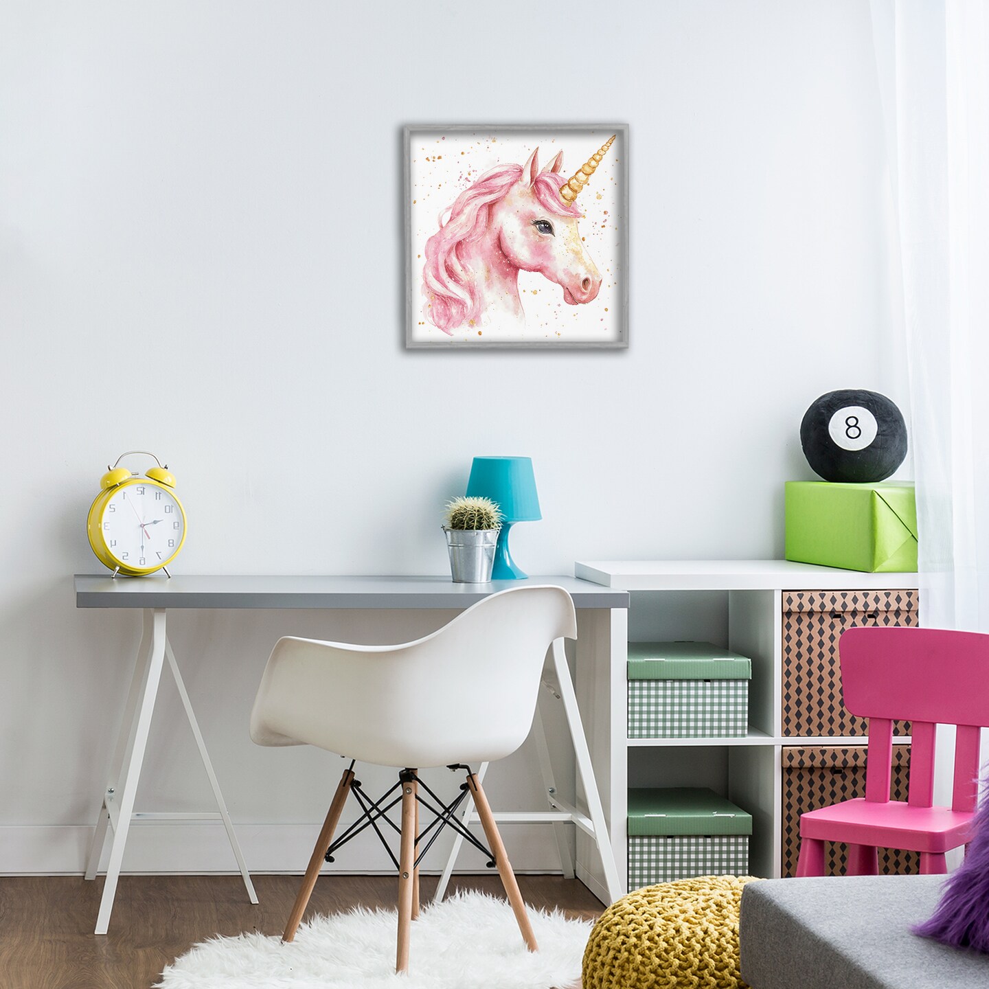 Stupell Industries Pink Unicorn with Paint Splatter Framed Giclee, design by Creative Studio