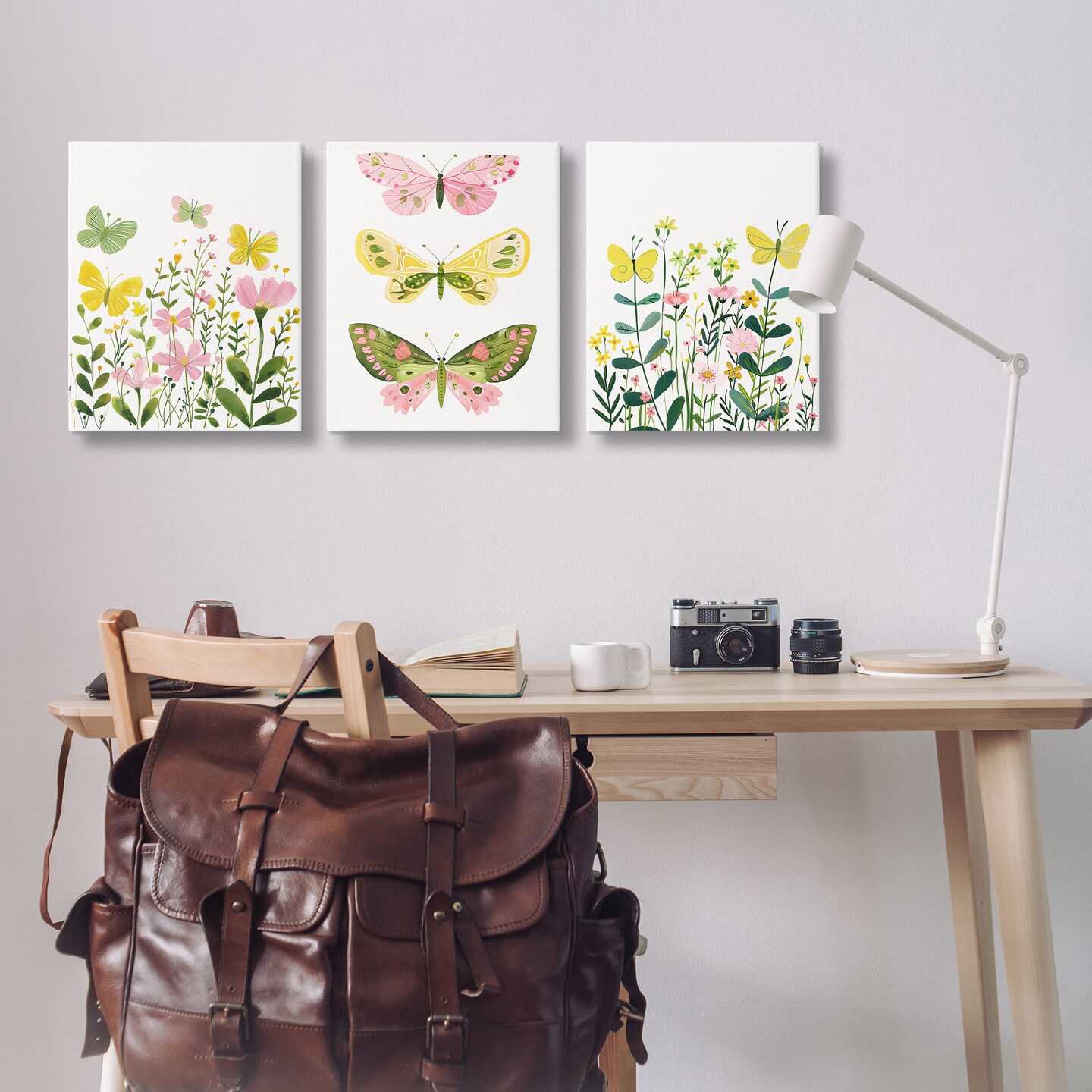 Stupell Industries Playful Butterflies and Florals 3 pc Canvas Wall Art Set Design by LSR Design Studio