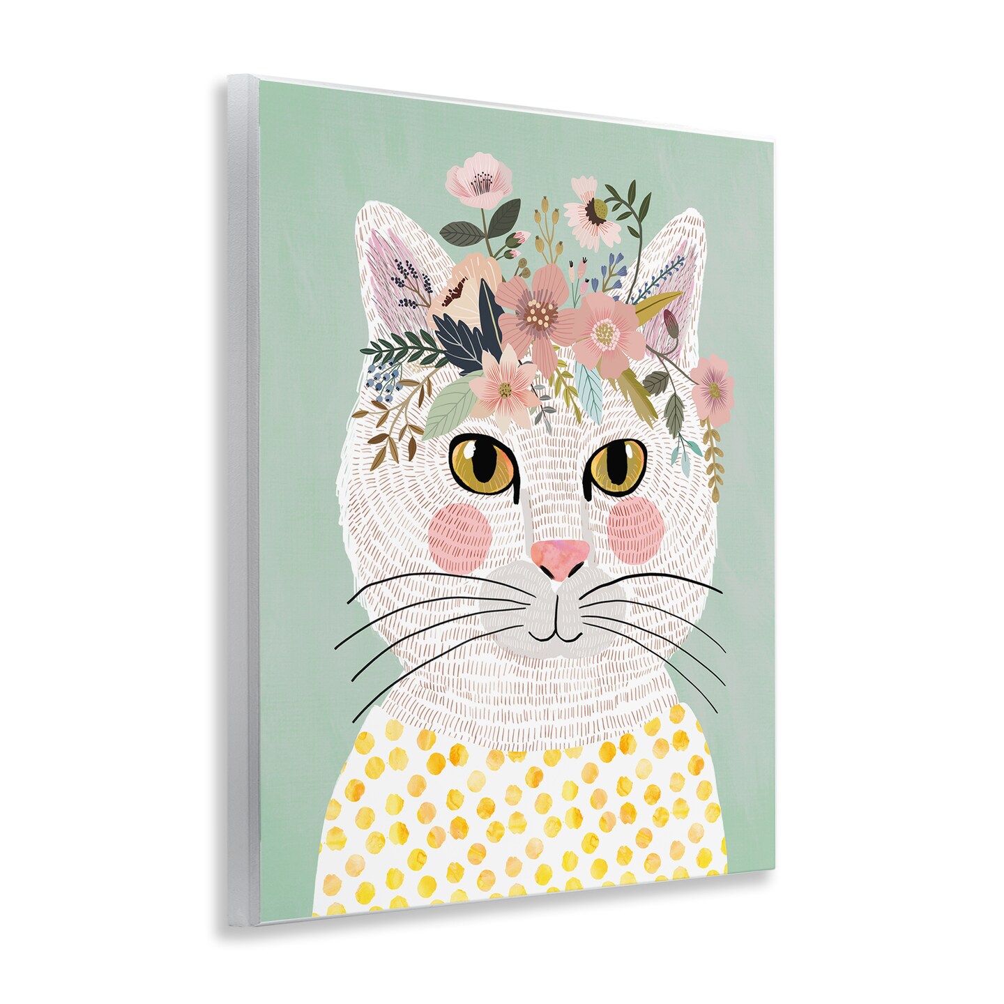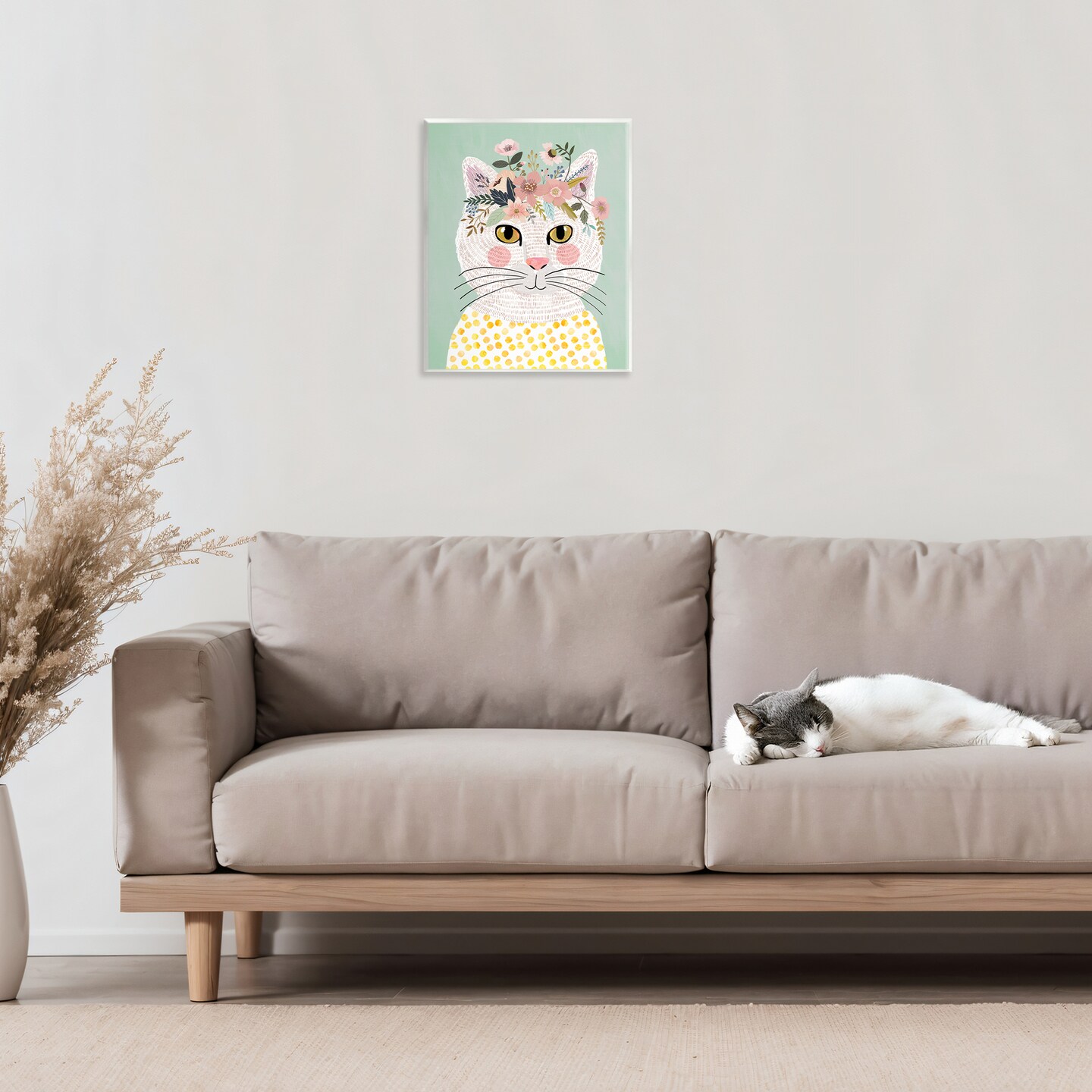 Stupell Industries Playful White Cat with Flowers Wall Plaque, design by Mia Charro