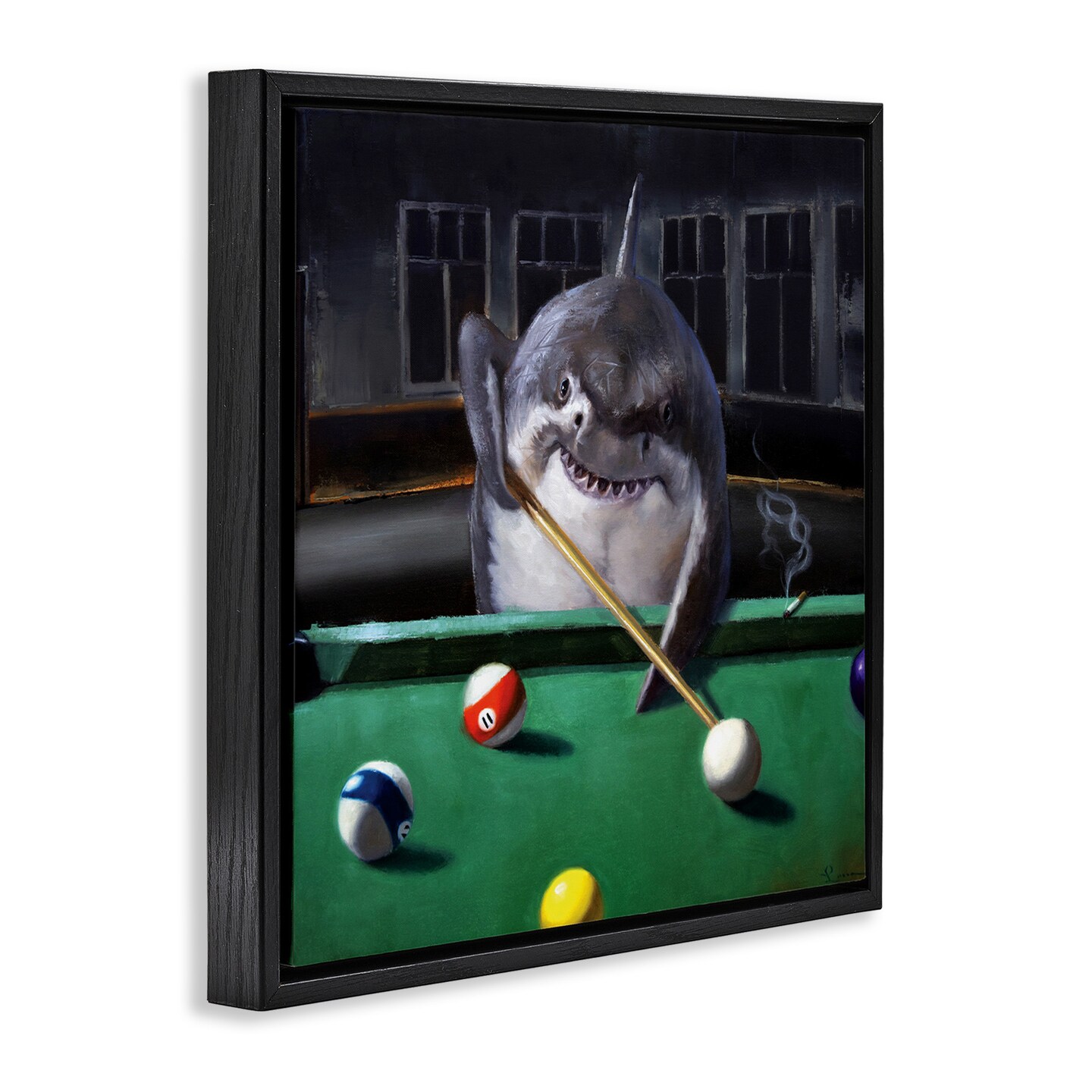 Stupell Industries Pool Shark Animal Pun Framed Floater Canvas Wall Art