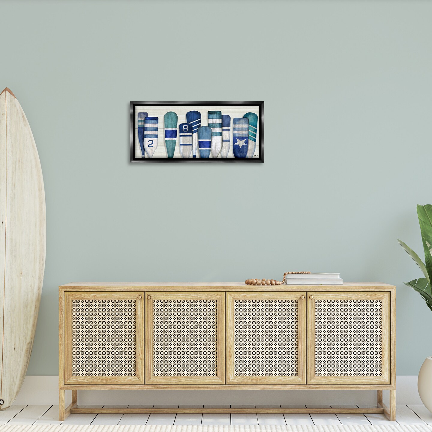 Stupell Industries Port Oars Nautical Blue Patterns Framed Floater Canvas Wall Art
