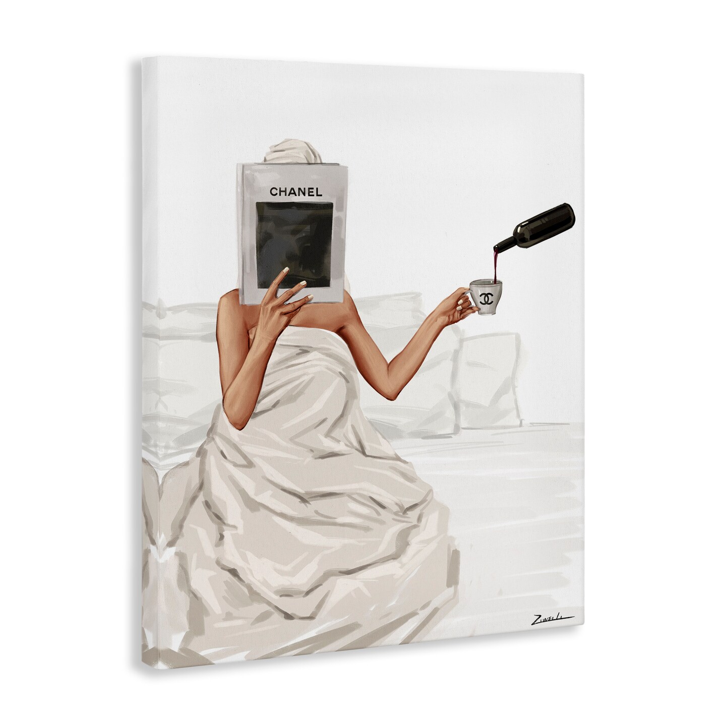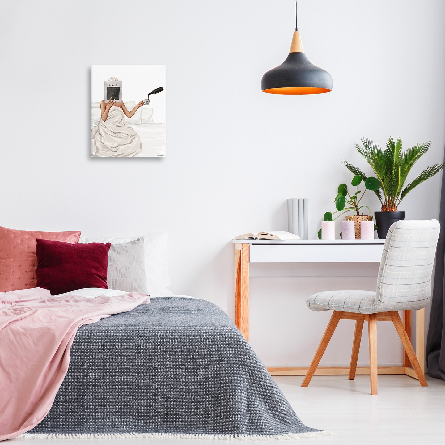 Stupell Industries Pouring Drink in Bed Canvas Design by Ziwei Li