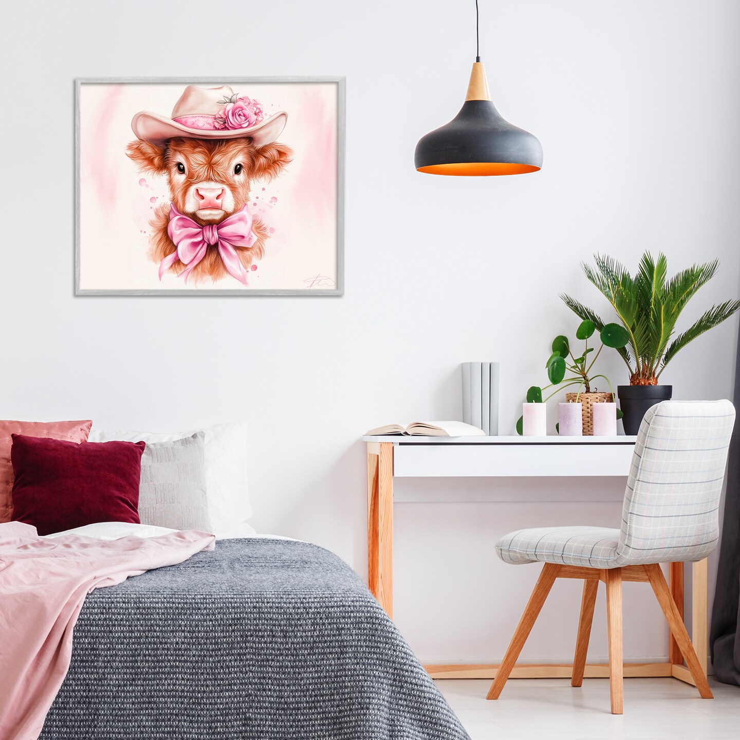 Stupell Industries Pretty In Pink Cow Framed Giclee, design by Shawna Stewart