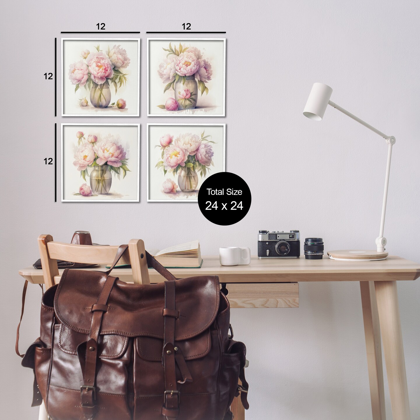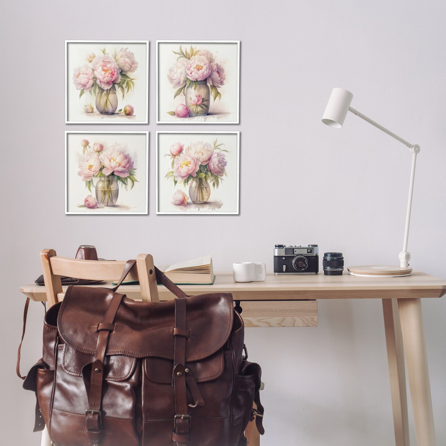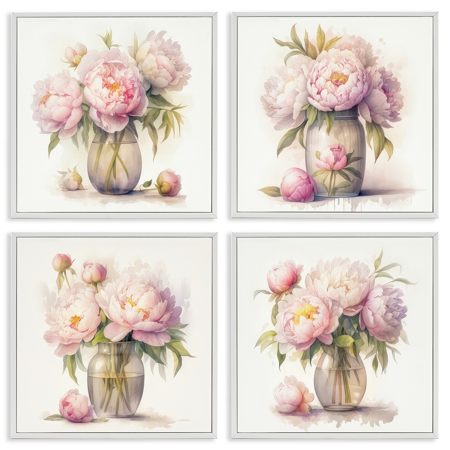 Stupell Industries Pretty Pink Peonies 4 pc Framed Giclee Wall Art Set Design by LSR Design Studio