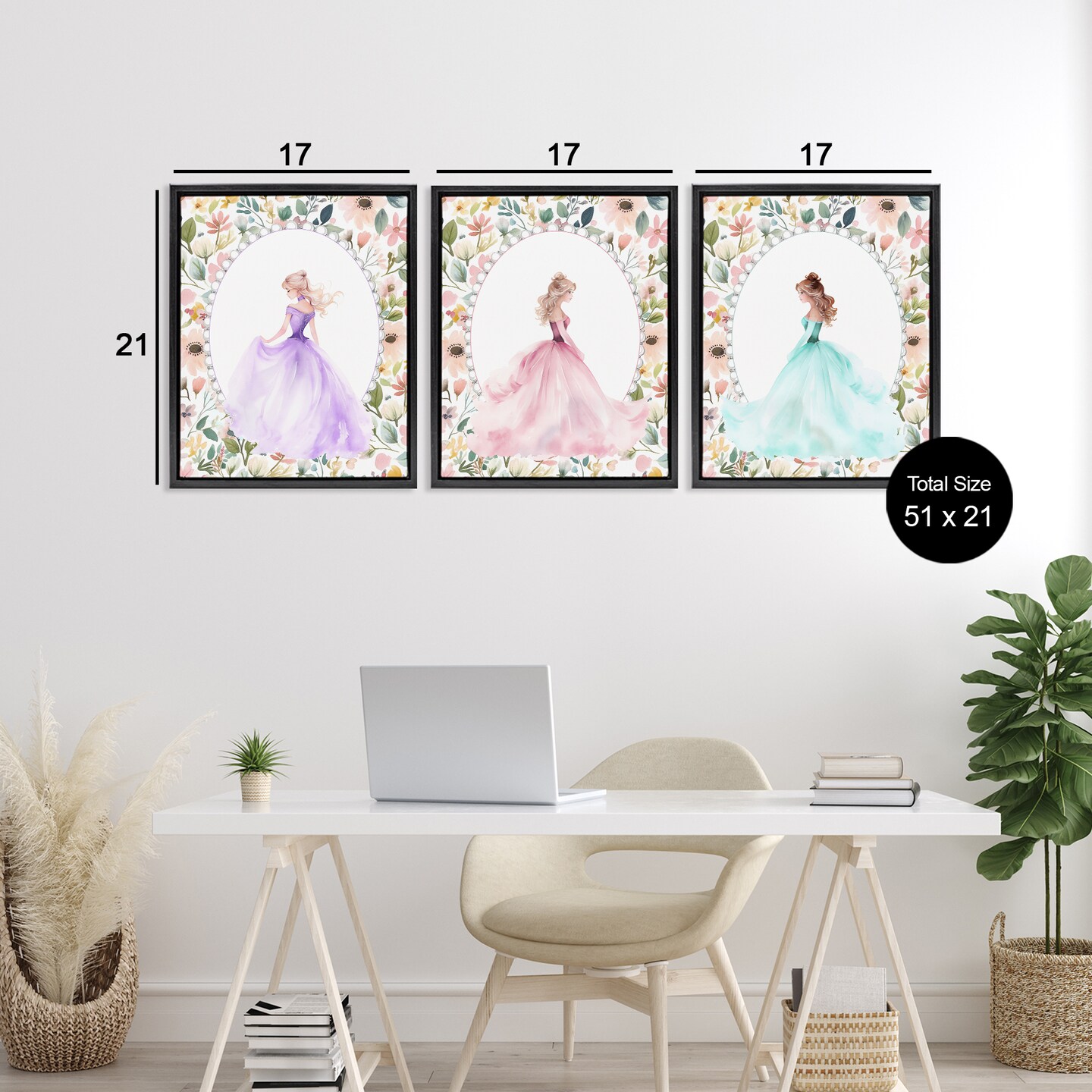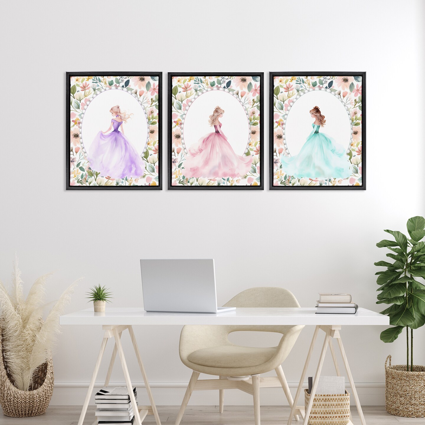Stupell Industries Princess Love Pearls & Florals 3pc Floating Frame Set, design by Christine Simpson Art