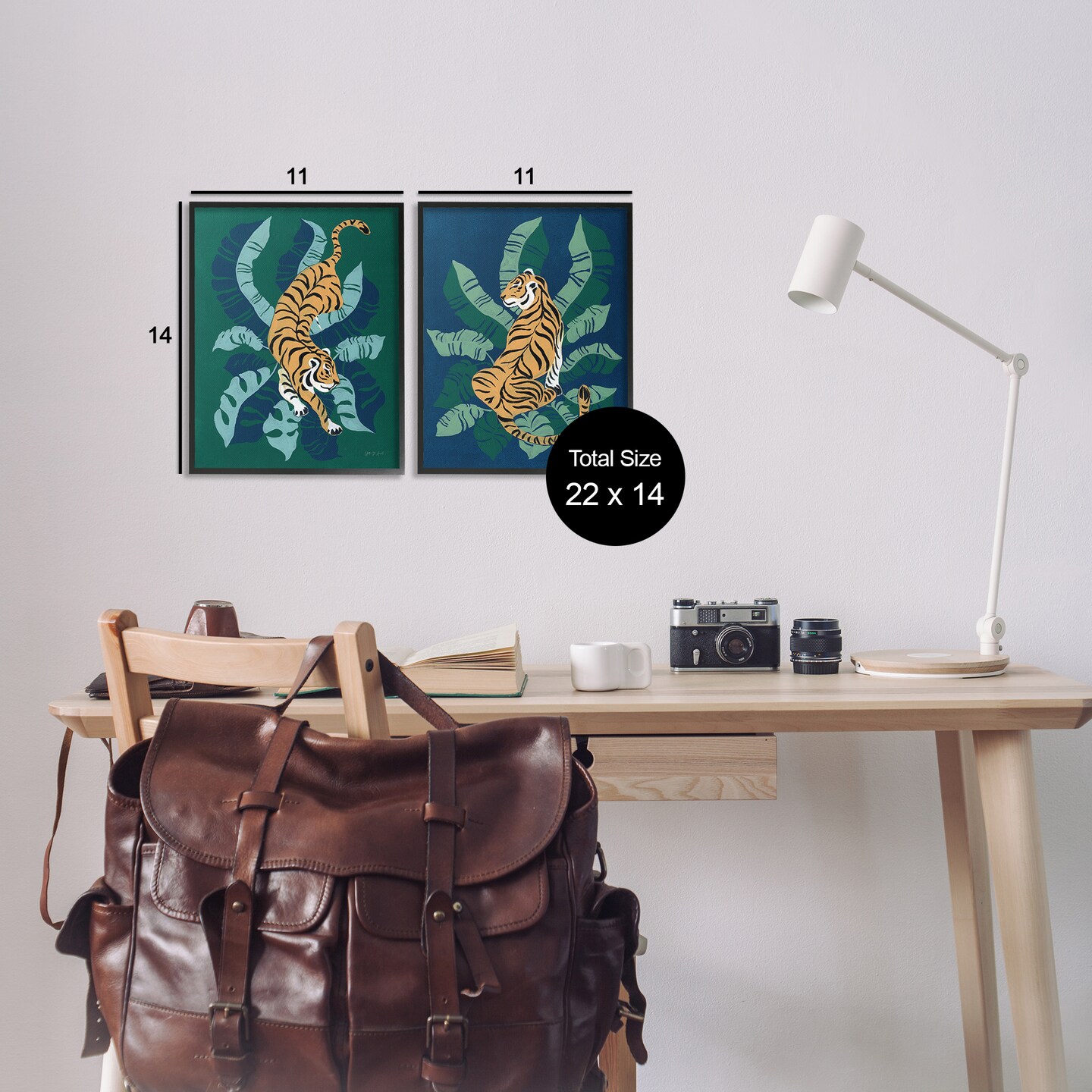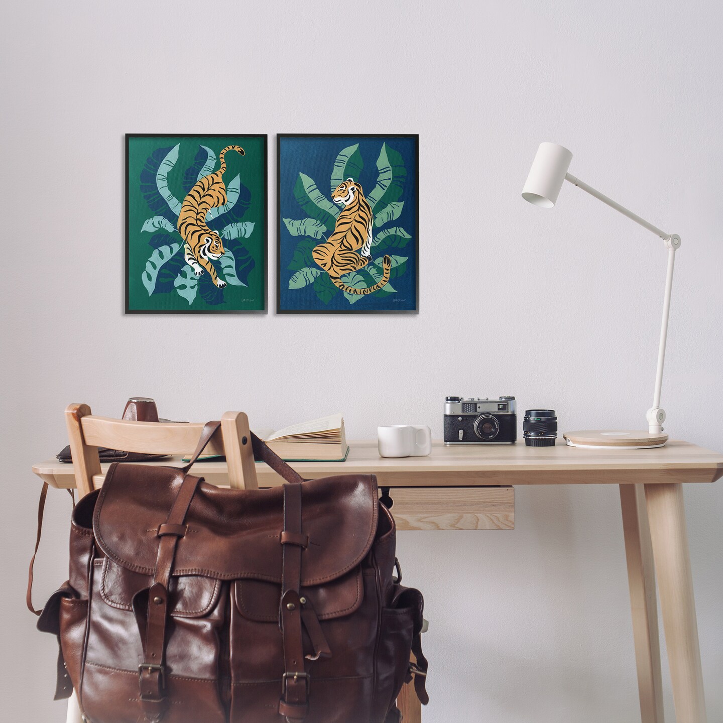 Stupell Industries Prowling Tiger Sitting Tiger Jungle 2 pc Framed Giclee Wall Art Set Design by Yvette St. Amant